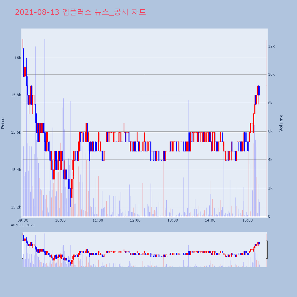 | 2 | 엠플러스(259630) 소폭 상승세 +3.21% 제목 : 엠플러스(259630)소폭 상승세 +3.21% | 인포스탁 | 엠플러스 | 2021-08-12 14:12:19 |