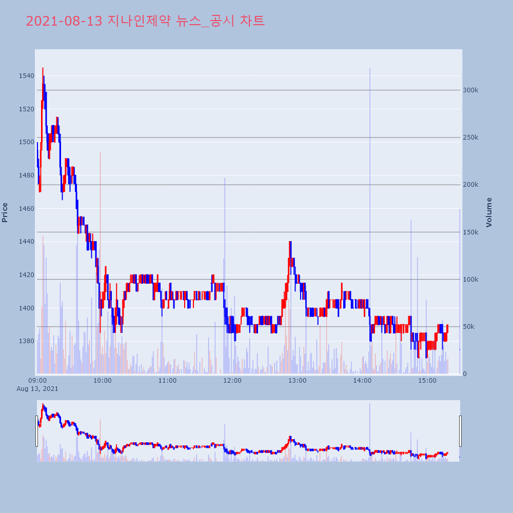 | 2 | 지나인제약, +5.21% VI 발동지나인제약(078650)이 VI가 발동했다. 전일 대비 | 조선경제 | 지나인제약 | 2021-08-12 09:17:40 |