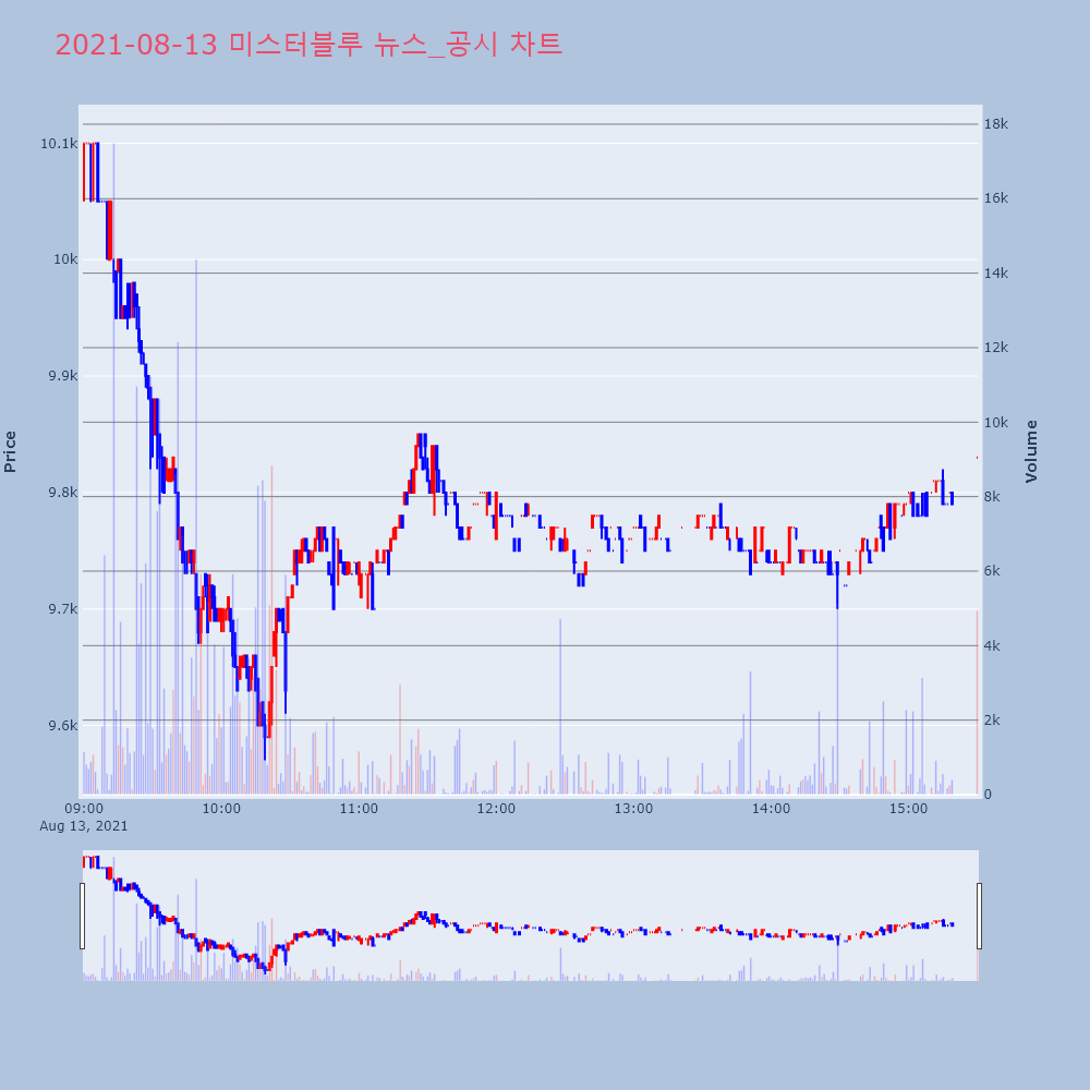 | 2021-08-13 15:50:00 | 코스닥 | 01047840 | 미스터블루 | 20210813000808 | 반기보고서 (2021.06) | 미스터블루 |
