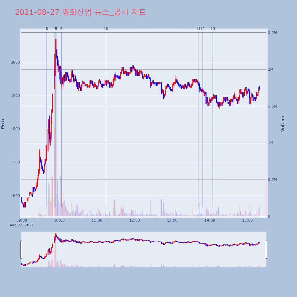 | 14 | 장초반 인기검색종목 PICK5 - 다믈멀티미디어, 비디아이, 원방테크.. 최적의매매타이밍을 실시간으로 전송하여 투자자들에게 도움 | 파이낸셜 | 에이치엘비 | 2021-08-27 09:39:14 |
