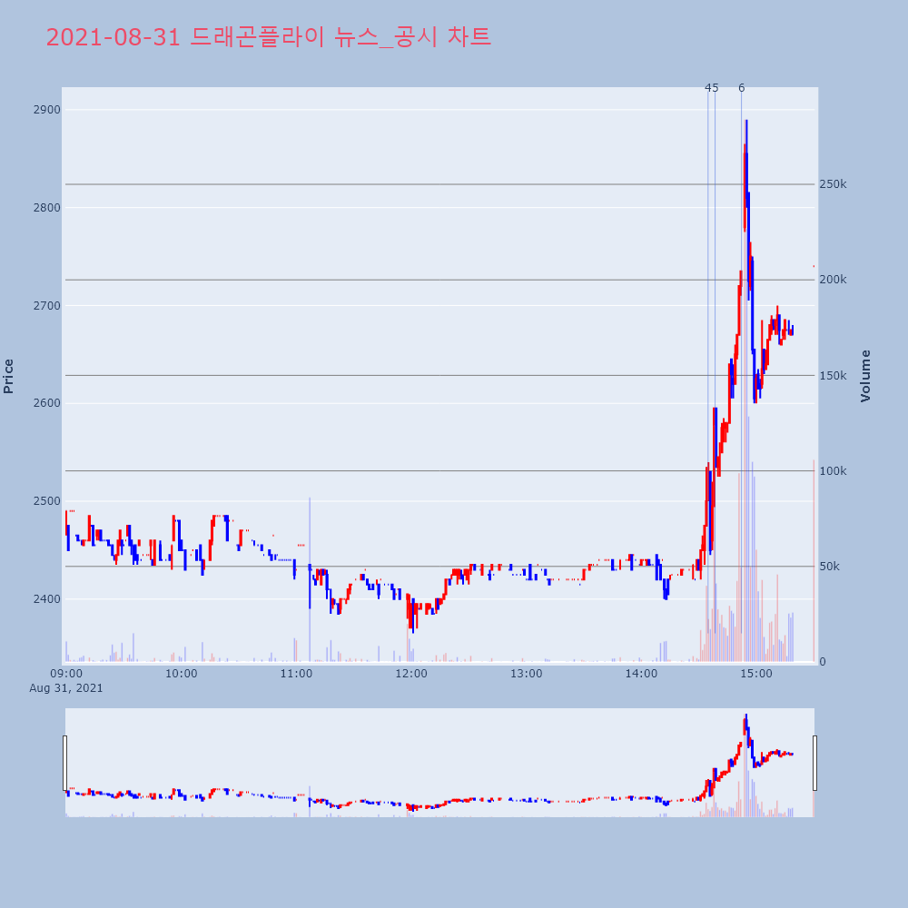 | 6 | 드래곤플라이, +9.84% VI 발동드래곤플라이(030350)가 VI가 발동했다. 전일 대 | 조선경제 | 드래곤플라이 | 2021-08-31 14:52:16 |