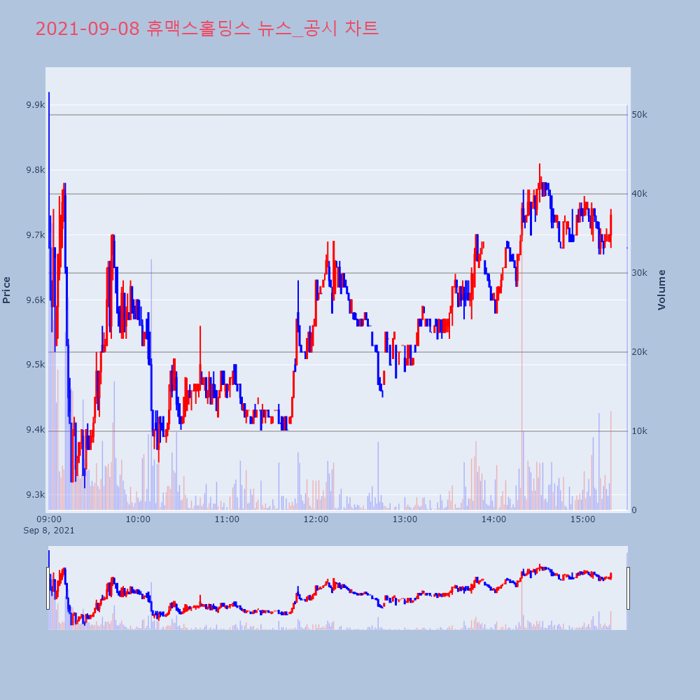| 3 | 휴맥스홀딩스, +12.00% VI 발동휴맥스홀딩스(028080)가 VI가 발동했다. 전일 대 | 조선경제 | 휴맥스홀딩스 | 2021-09-07 12:57:03 |