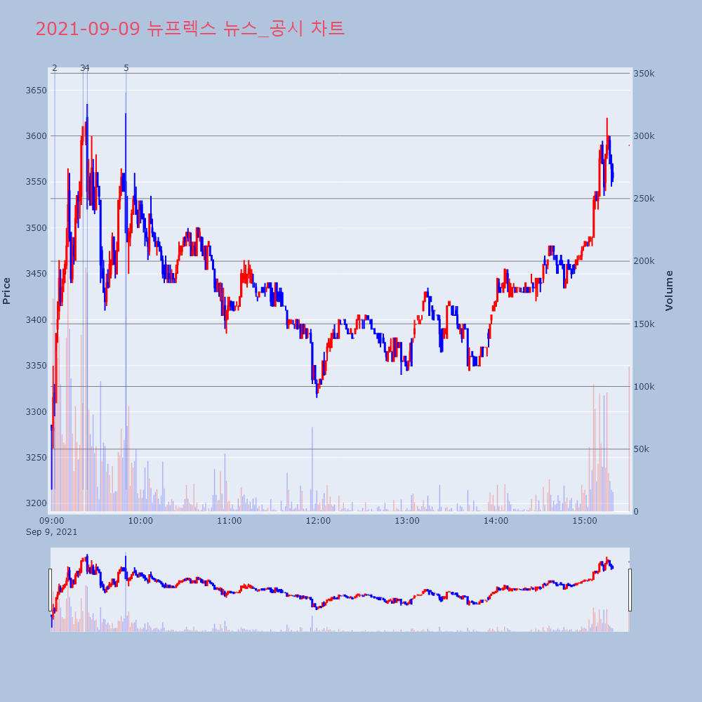 | 3 | 뉴프렉스, +14.24% VI 발동뉴프렉스(085670)가 VI가 발동했다. 전일 대비 | 조선경제 | 뉴프렉스 | 2021-09-09 09:21:11 |