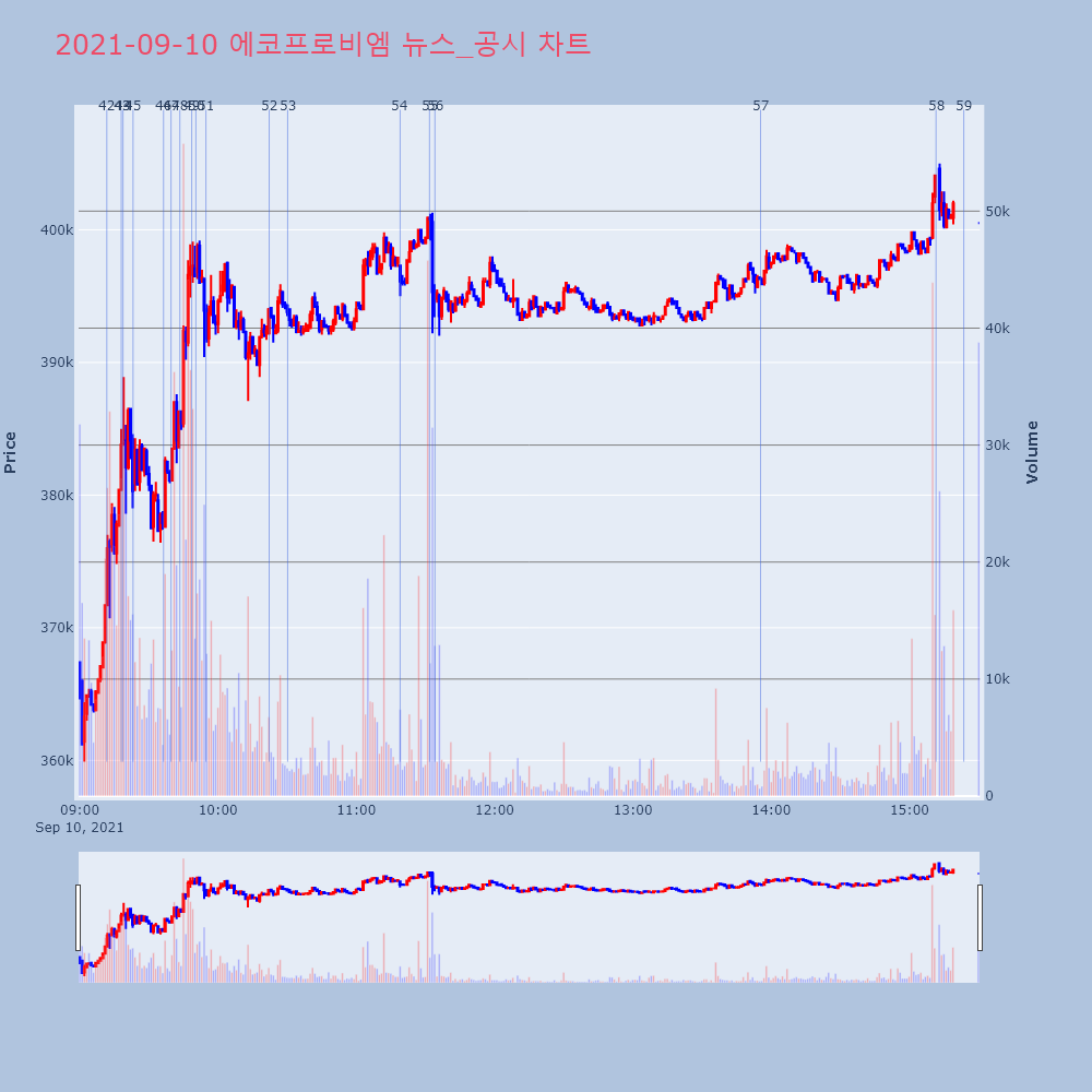 | 43 | [특징주]에코프로비엠, 5%대 강세…37만원선▶ 하이스탁론, 선취수수료 없는 월 0.2%대 최저금리 | 이데일리 | 에코프로비엠 | 2021-09-10 09:18:00 |