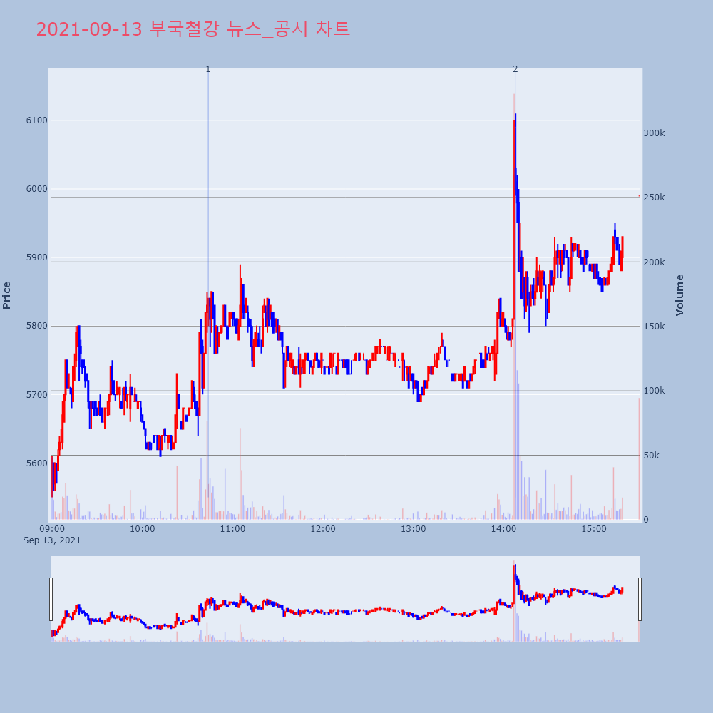 | 2 | 부국철강, +5.67% 상승폭 확대부국철강(026940)이 상승폭을 확대하고 있다. 전일 | 조선경제 | 부국철강 | 2021-09-13 14:07:44 |