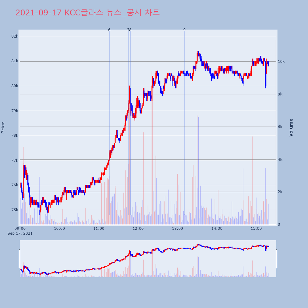 | 9 | KCC글라스(344820), 52주 신고가 KCC글라스(344820)는 당일 80,600원까지 오 | 헤럴드경제 | KCC글라스 | 2021-09-17 13:10:33 |