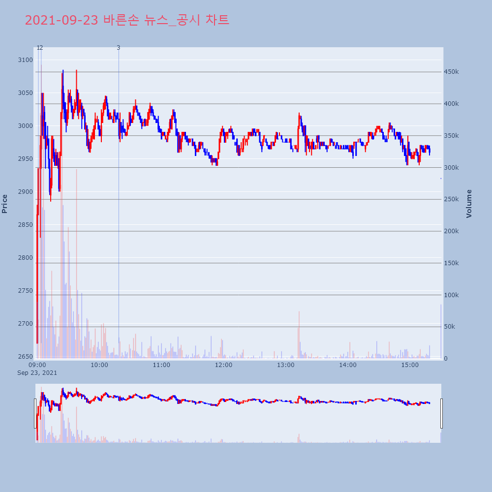 1 | 바른손, +11.20% VI 발동바른손(018700)이 VI가 발동했다. 전일 대비 1 | 조선경제 | 바른손 | 2021-09-23 09:01:07 |
