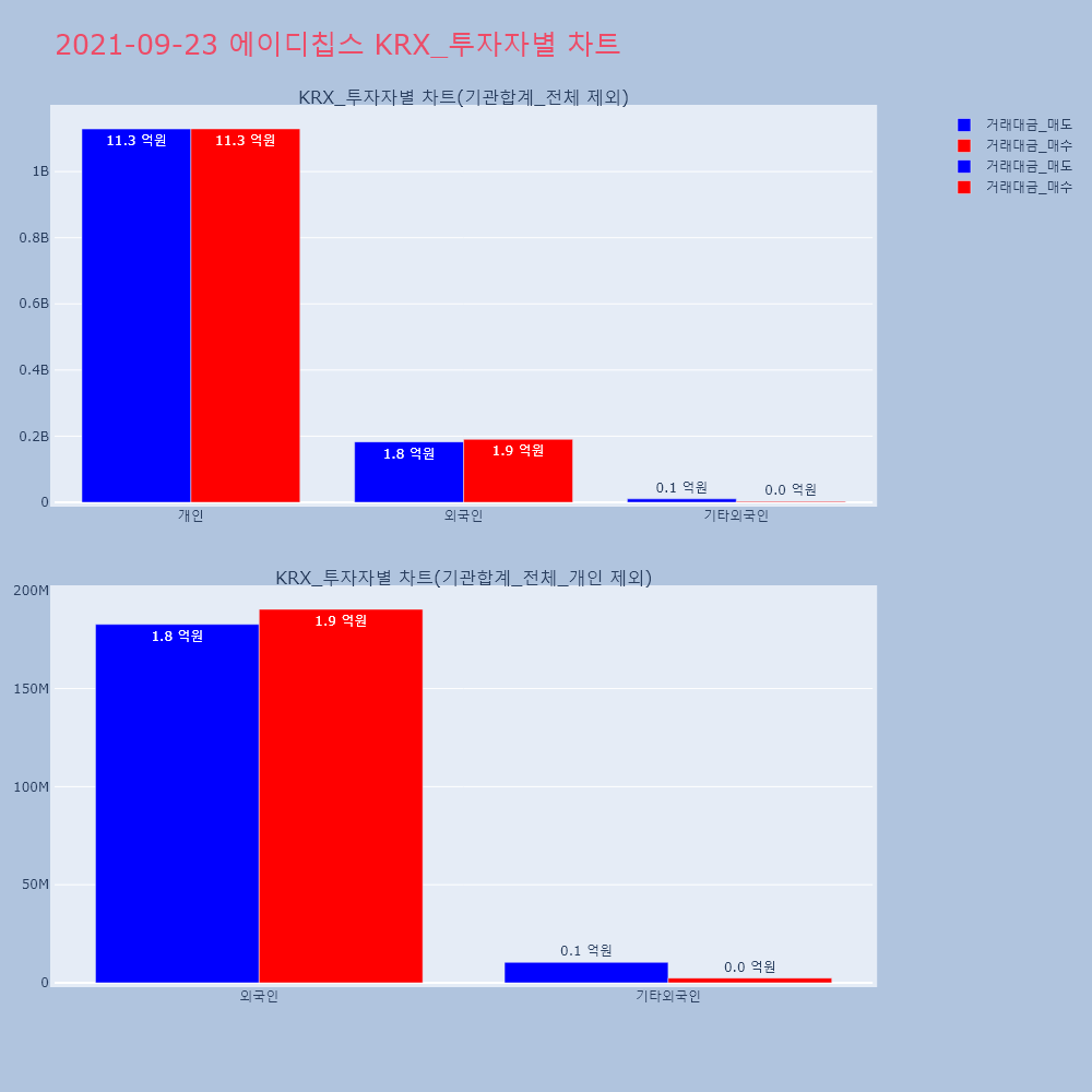 외국인 | 21,760 | 8,050 | -13,710 | 238,808,700 | 86,898,250 | -151,910,450 |