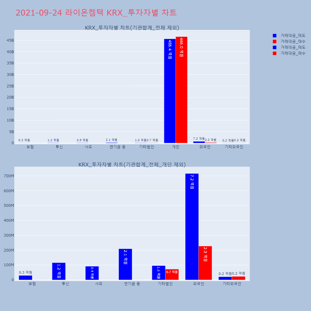기타외국인 | 21,375 | 8,599 | -12,776 | 2,005,986,700 | 790,086,900 | -1,215,899,800 |