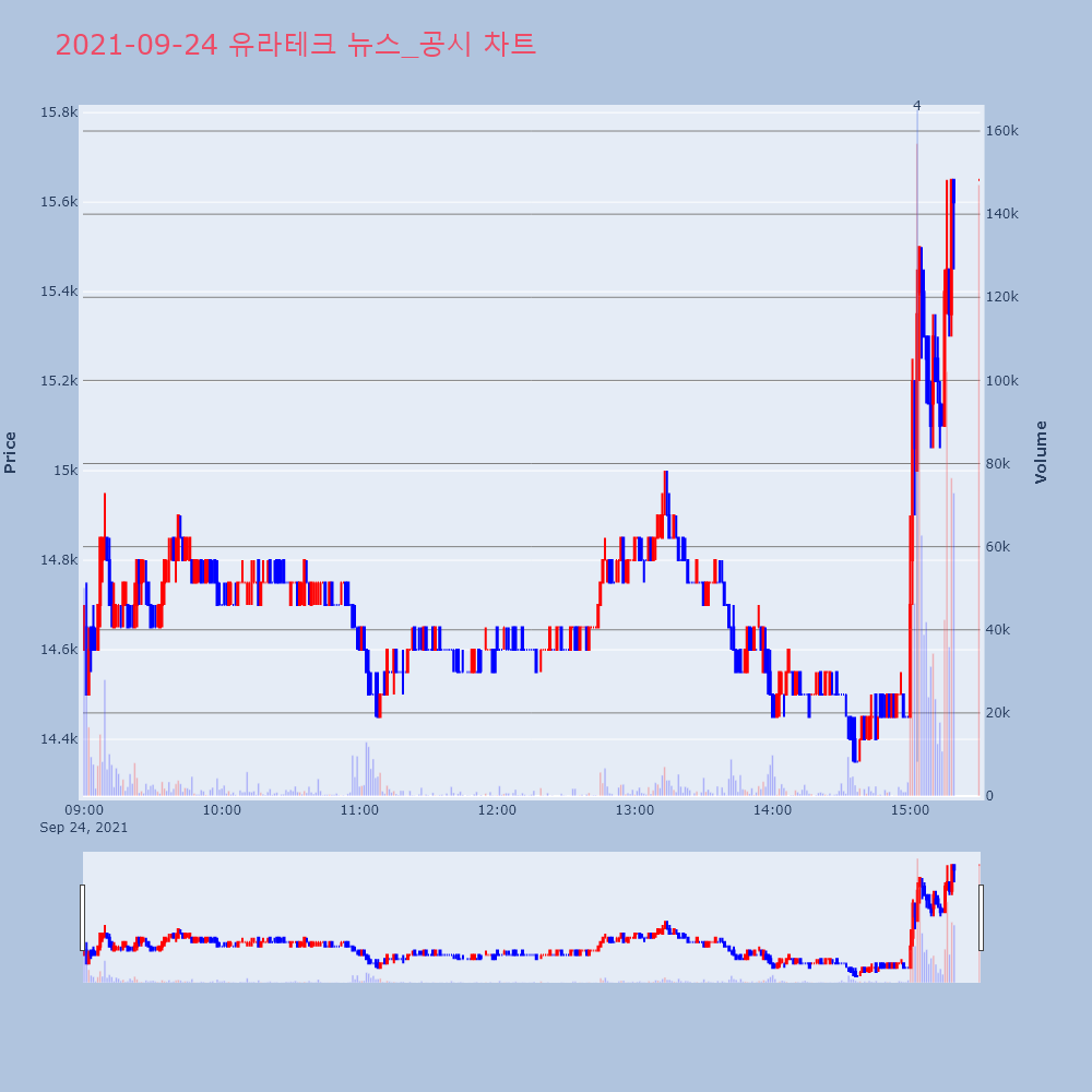 3 | 유라테크, +8.24% VI 발동유라테크(048430)가 VI가 발동했다. 전일 대비 | 조선경제 | 유라테크 | 2021-09-23 15:18:36 |