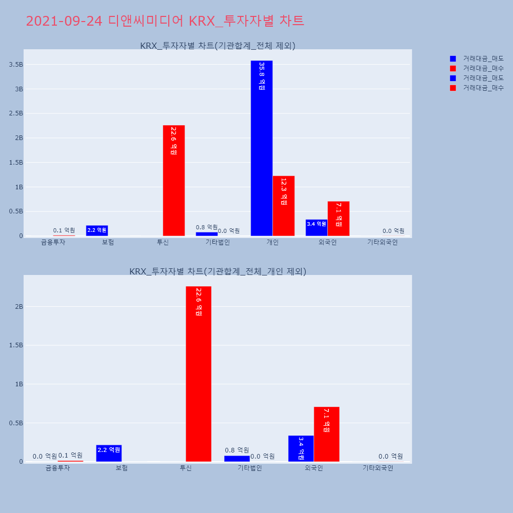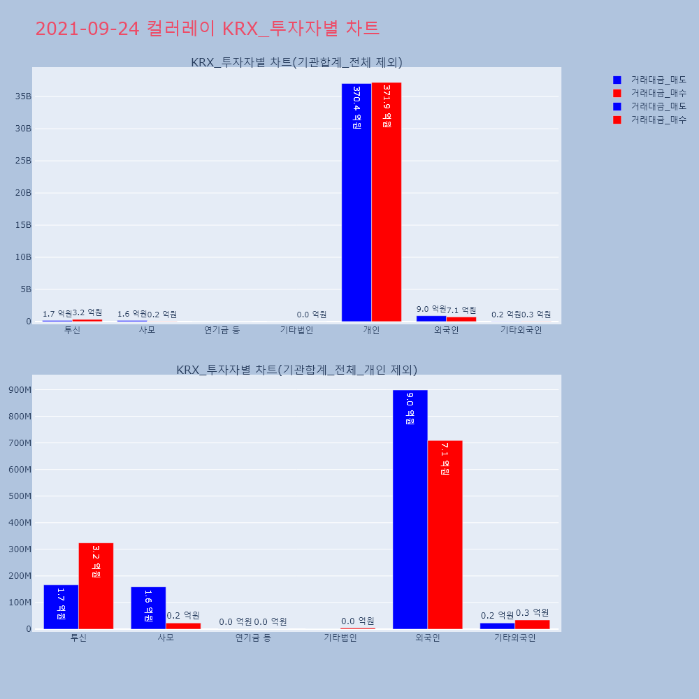 | 투자기관 | 거래량_매도 | 거래량_매수 | 거래량_순매수 | 거래대금_매도 | 거래대금_매수 | 거래대금_순매수 |