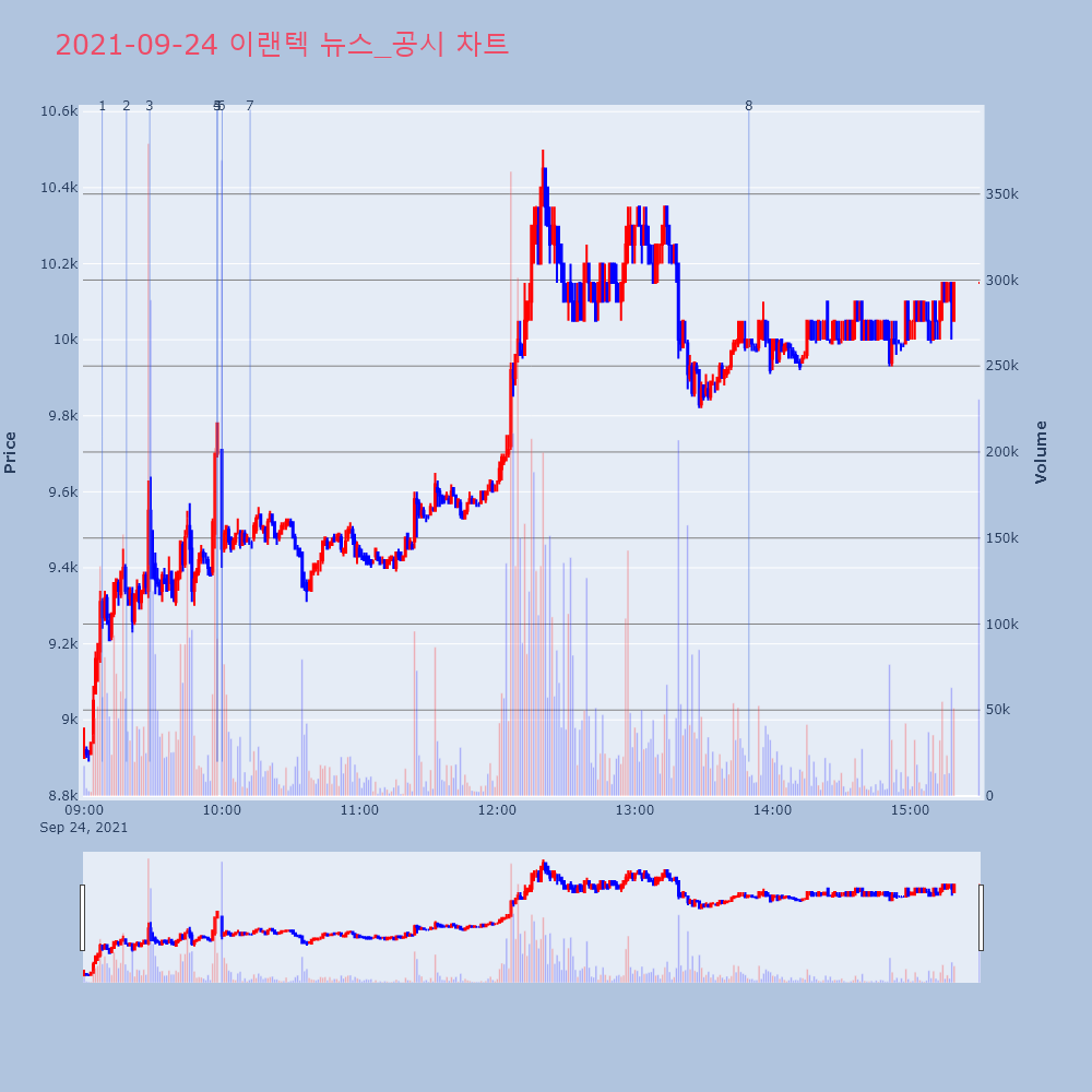 | 8 | [생생한 주식쇼 생쇼] 이랜텍(054210) [생생한 주식쇼 생쇼] 이랜텍(054210)[ⓒ 매일경 | 매일경제 | 이랜텍 | 2021-09-24 13:49:44 |