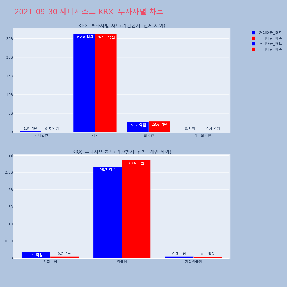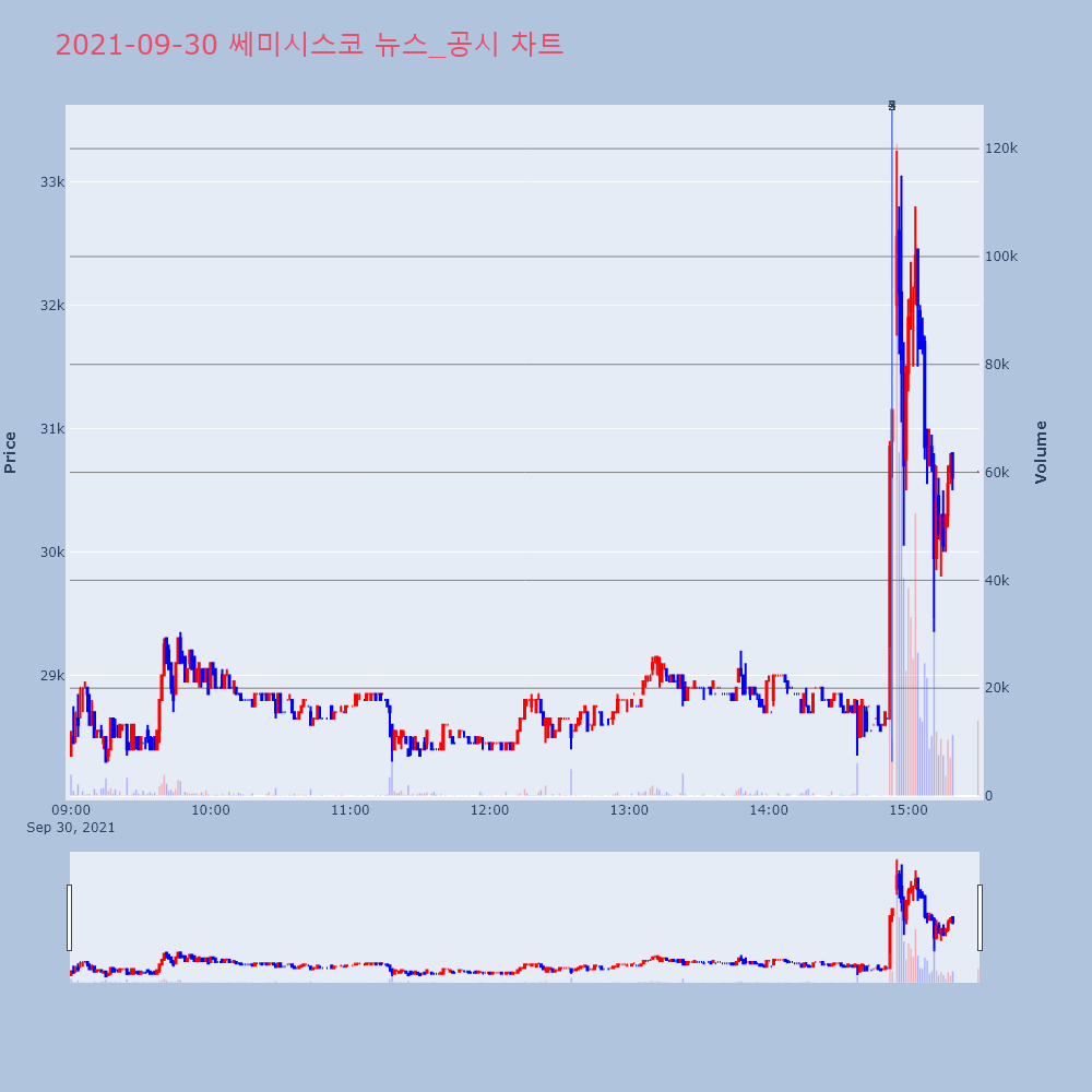 5 | 쎄미시스코, +7.60% VI 발동쎄미시스코(136510)가 VI가 발동했다. 전일 대비 | 조선경제 | 쎄미시스코 | 2021-09-30 14:53:02 |
