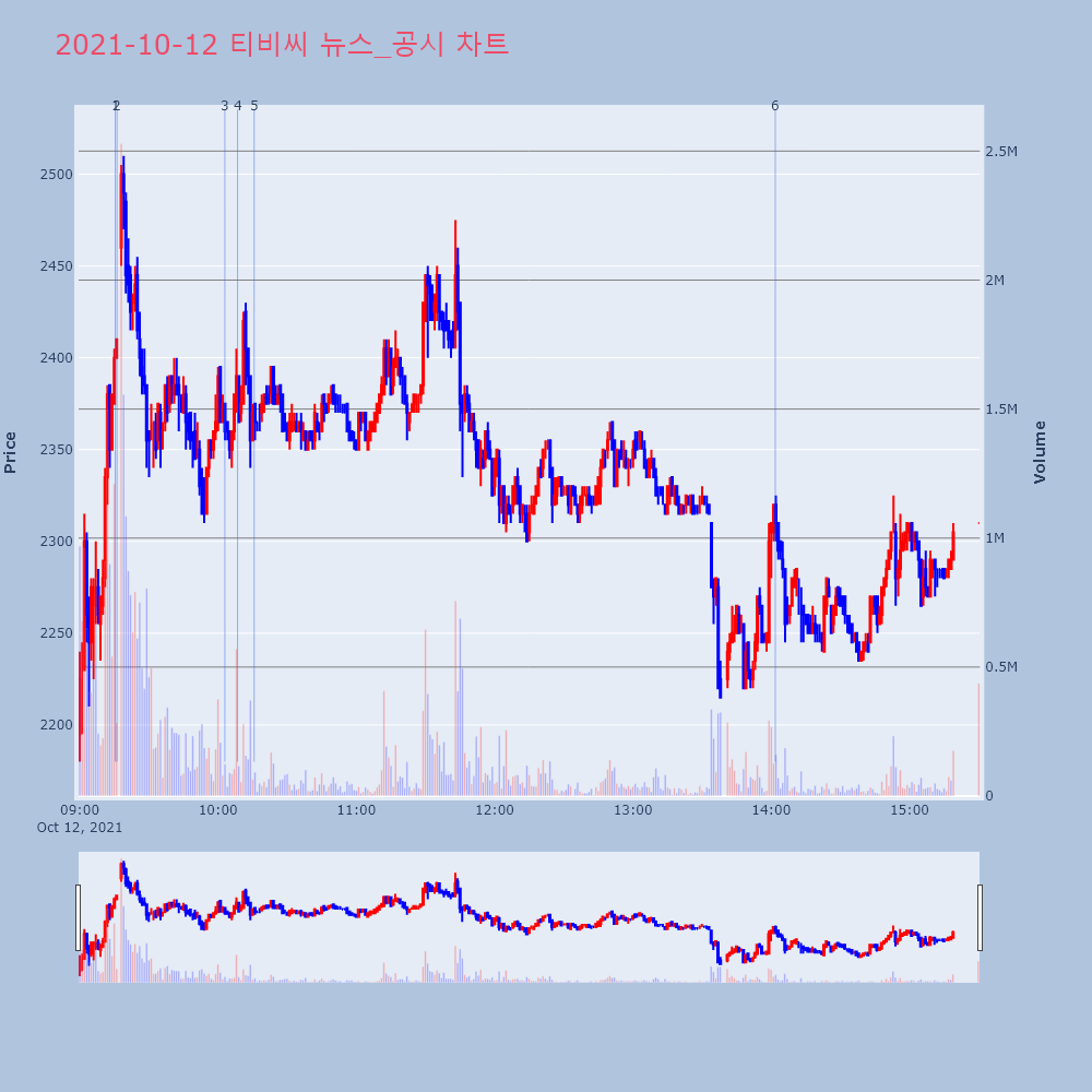 | 12 | [장초반 인기 검색 종목 PICK5] - 갤럭시아머니트리, 티비씨, 쇼박스... 최적의 매매타이밍을 실시간으로 전송하여 투자자들에게 도 | 파이낸셜 | 티비씨 | 2021-10-12 10:02:57 |