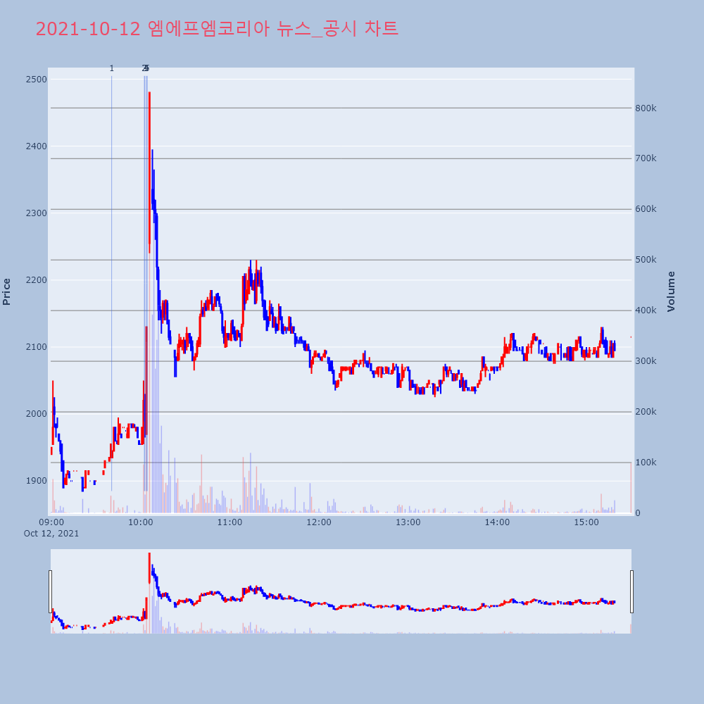 | 5 | 엠에프엠코리아, +11.23% VI 발동엠에프엠코리아(323230)가 VI가 발동했다. 전일 | 조선경제 | 엠에프엠코리아 | 2021-10-12 10:04:24 |