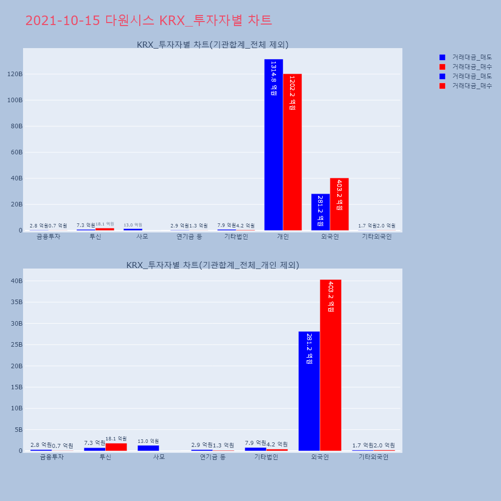 | 투자기관 | 거래량_매도 | 거래량_매수 | 거래량_순매수 | 거래대금_매도 | 거래대금_매수 | 거래대금_순매수 |