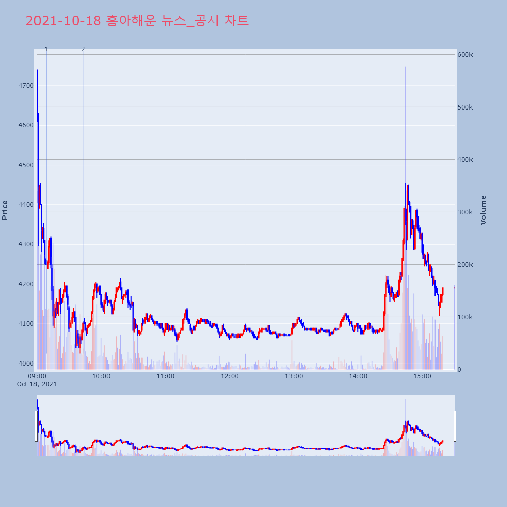 | 3 | [fnRASSI]장마감, 거래소 하락 종목(흥아해운 -10.9% ↓) 18일 거래소 기준으로 하락한 종목은 흥아해운(0032 | 파이낸셜 | 흥아해운 | 2021-10-18 16:31:02 |
