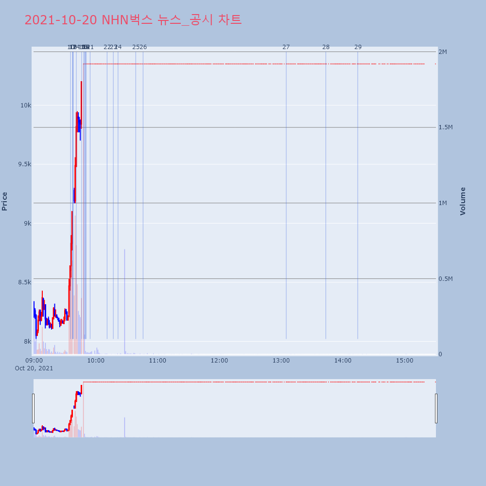 | 22 | [특징주] NHN벅스, 싸이월드 운영 재개 소식에 52주 신고가 경신 제목 : [특징주] NHN벅스, 싸이월드 운영 재개 소 | 인포스탁 | NHN벅스 | 2021-10-20 10:10:57 |