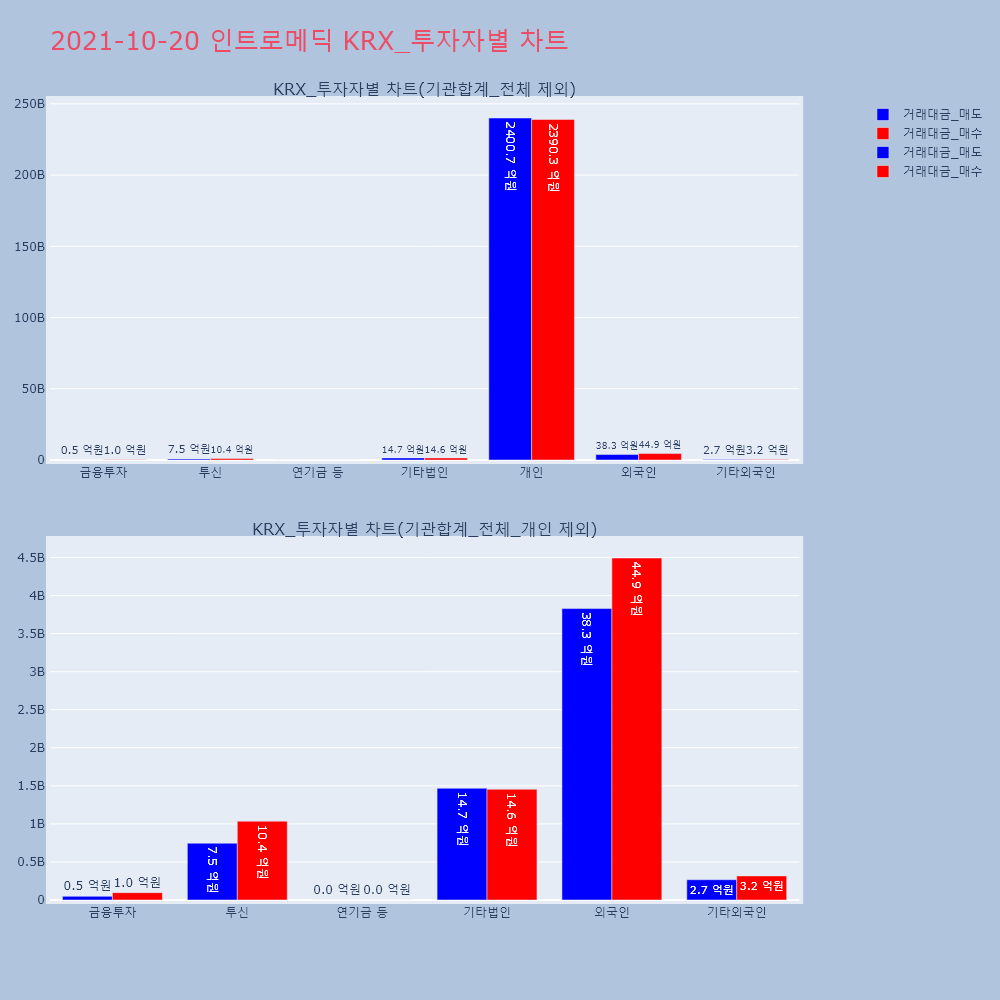 | 투자기관 | 거래량_매도 | 거래량_매수 | 거래량_순매수 | 거래대금_매도 | 거래대금_매수 | 거래대금_순매수 |