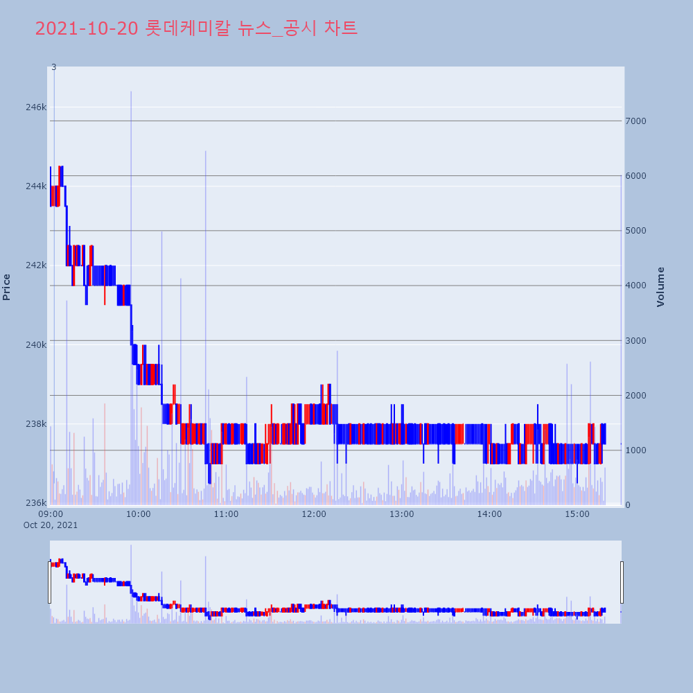 | 3 | 석유화학주 혼조세 출발, 롯데케미칼 -0.41% 제목 : 석유화학주 혼조세 출발, 롯데케미칼 -0.41 | 인포스탁 | 롯데케미칼 | 2021-10-20 09:02:28 |