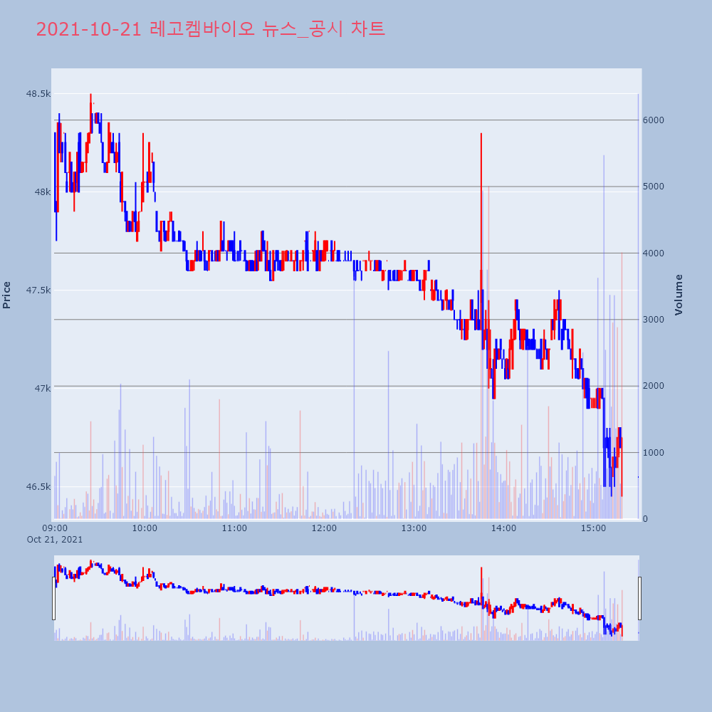 | 4 | 레고켐바이오, 중국 안텐진과 신약 공동연구 계약 제목 : 레고켐바이오, 중국 안텐진과 신약 공동연구 계 | 인포스탁 | 레고켐바이오 | 2021-10-21 17:32:59 |