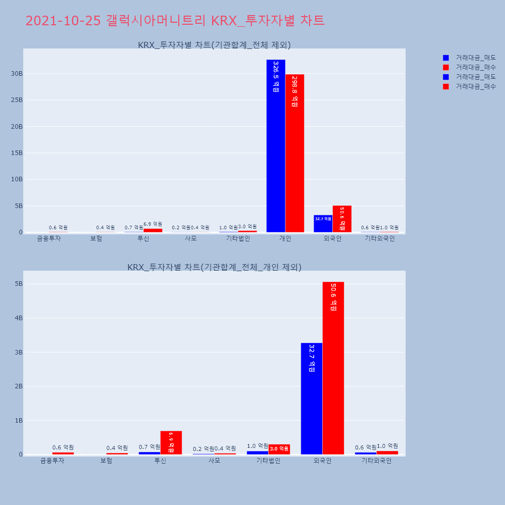 | 사모 | 2,919 | 525 | -2,394 | 77,526,100 | 13,971,900 | -63,554,200 |