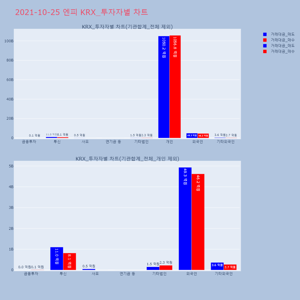 | 투자기관 | 거래량_매도 | 거래량_매수 | 거래량_순매수 | 거래대금_매도 | 거래대금_매수 | 거래대금_순매수 |