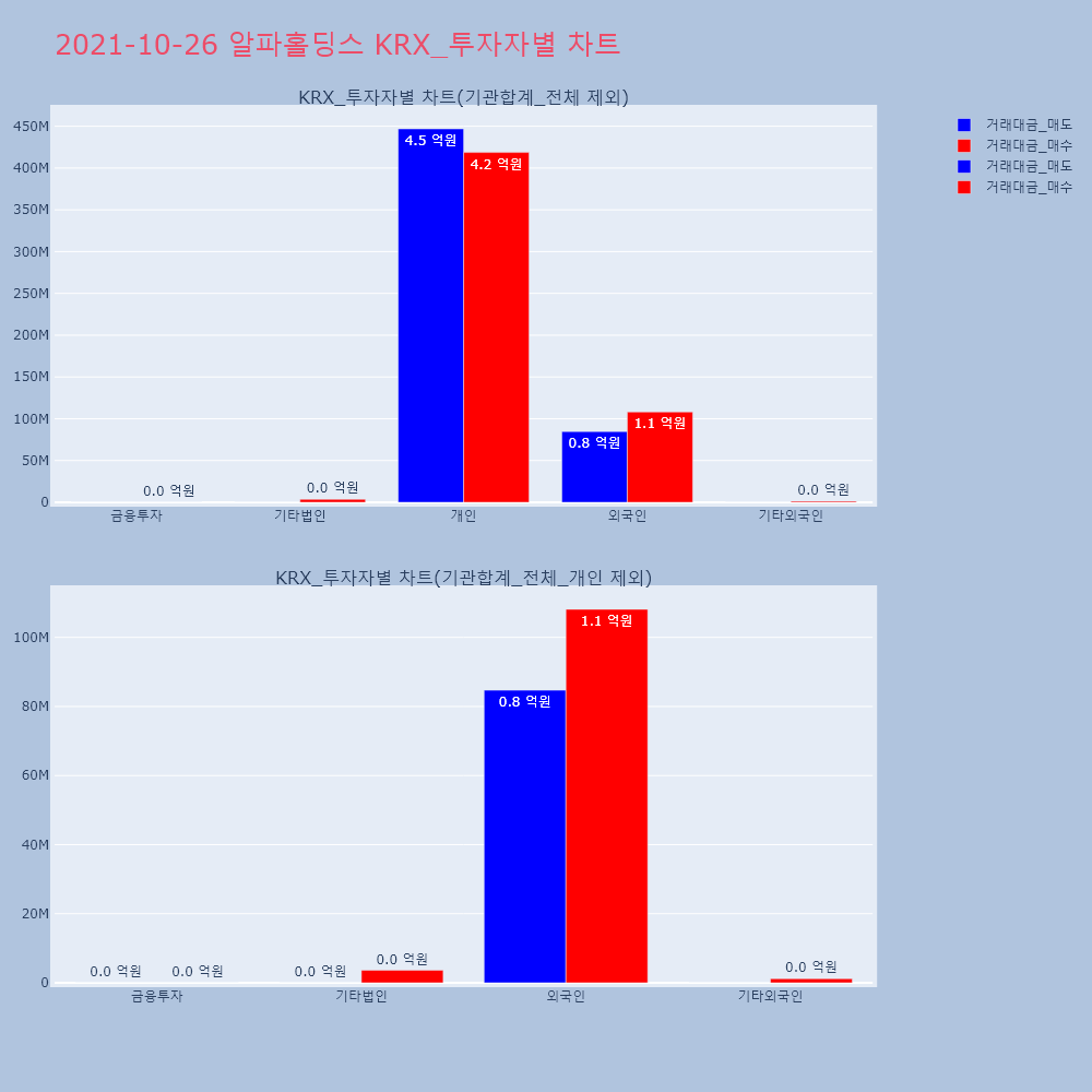 2 | 알파홀딩스, 260억원 규모 유형자산 양도 결정 제목 : 알파홀딩스, 260억원 규모 유형자산 양도 결 | 인포스탁 | 알파홀딩스 | 2021-10-26 13:59:48 |