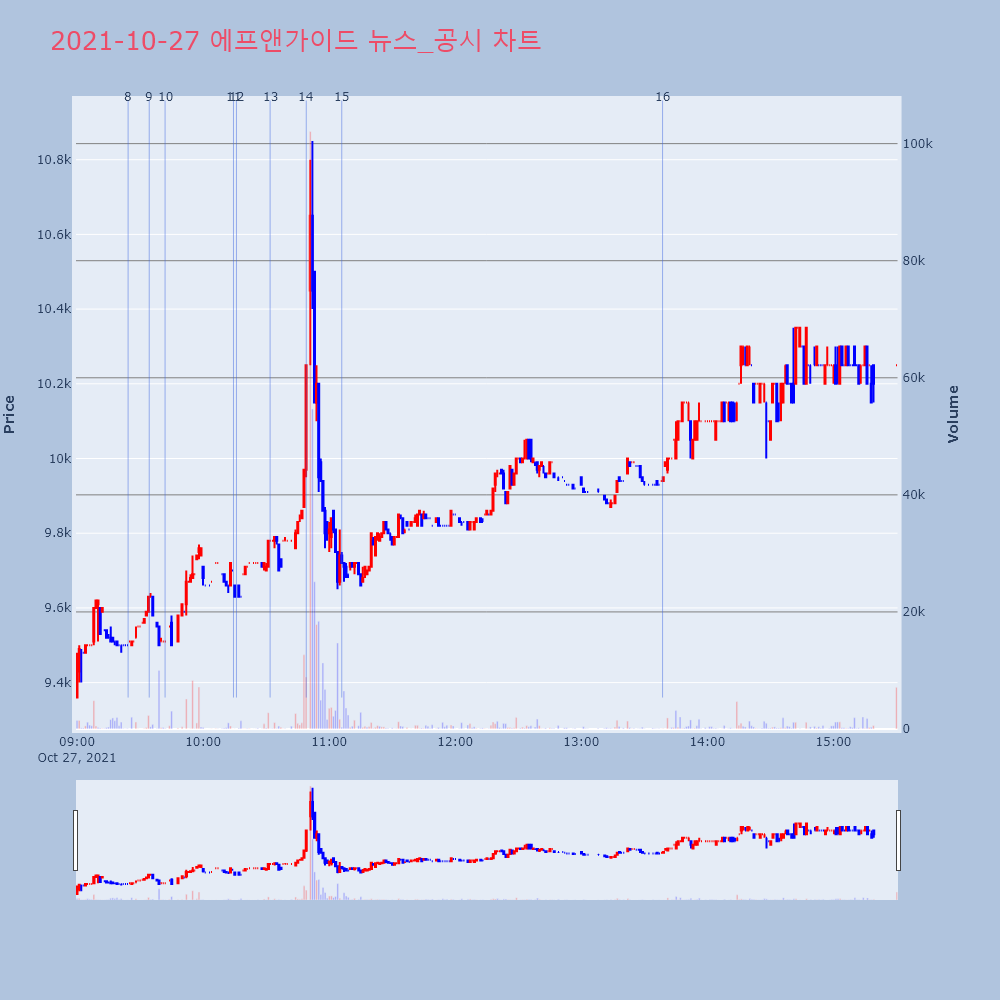 16 | [특징주] 에프앤가이드, 3분기 순익 110% 증가에 상승세… 5%↑ 제목 : [특징주] 에프앤가이드, 3분기 순익 110% | 인포스탁 | 에프앤가이드 | 2021-10-27 13:38:40 |