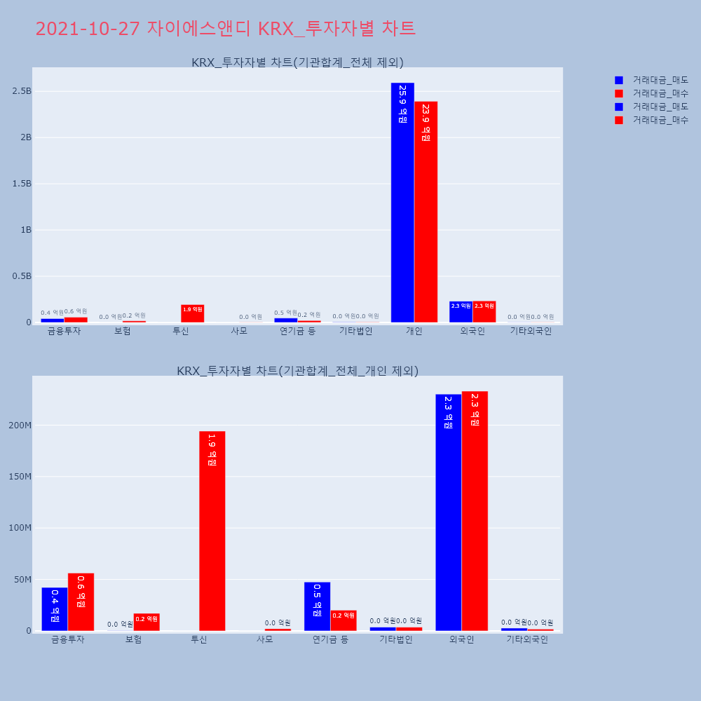 | 투자기관 | 거래량_매도 | 거래량_매수 | 거래량_순매수 | 거래대금_매도 | 거래대금_매수 | 거래대금_순매수 |