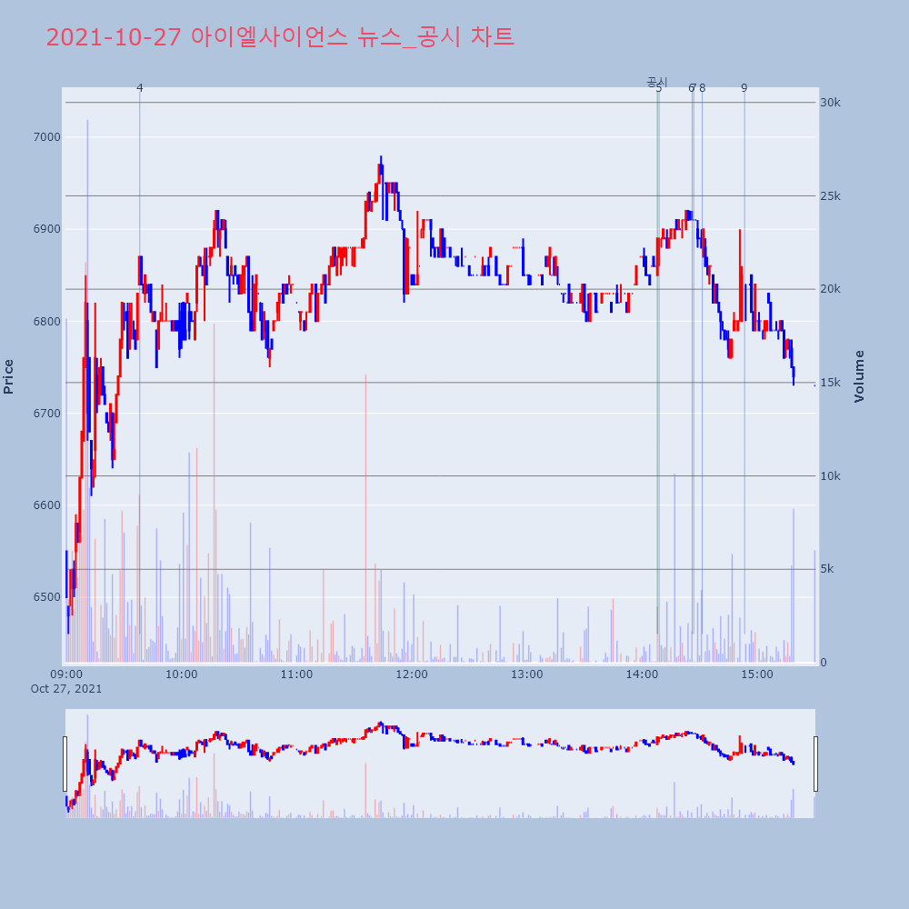 3 | 아이엘사이언스, +4.41% VI 발동아이엘사이언스(307180)가 VI가 발동했다. 전일 | 조선경제 | 아이엘사이언스 | 2021-10-26 11:58:20 |
