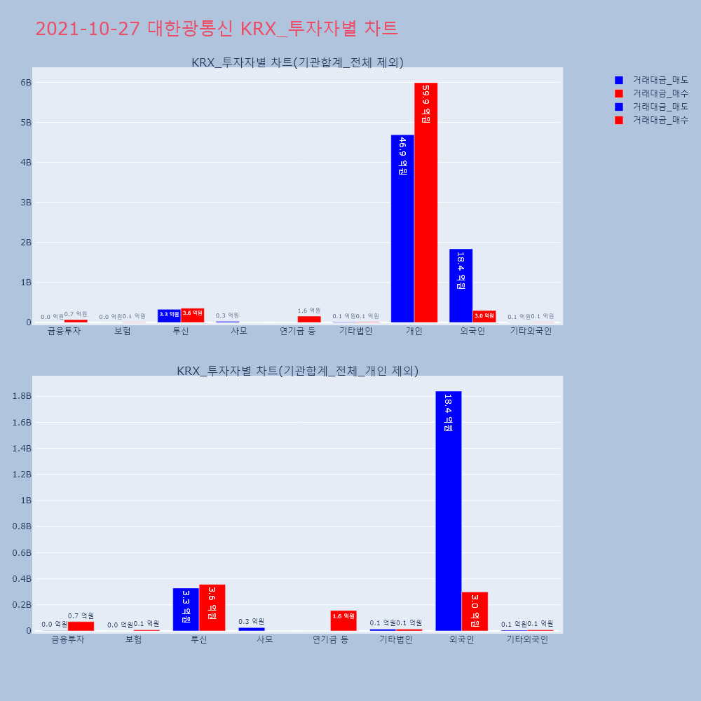 | 투자기관 | 거래량_매도 | 거래량_매수 | 거래량_순매수 | 거래대금_매도 | 거래대금_매수 | 거래대금_순매수 |