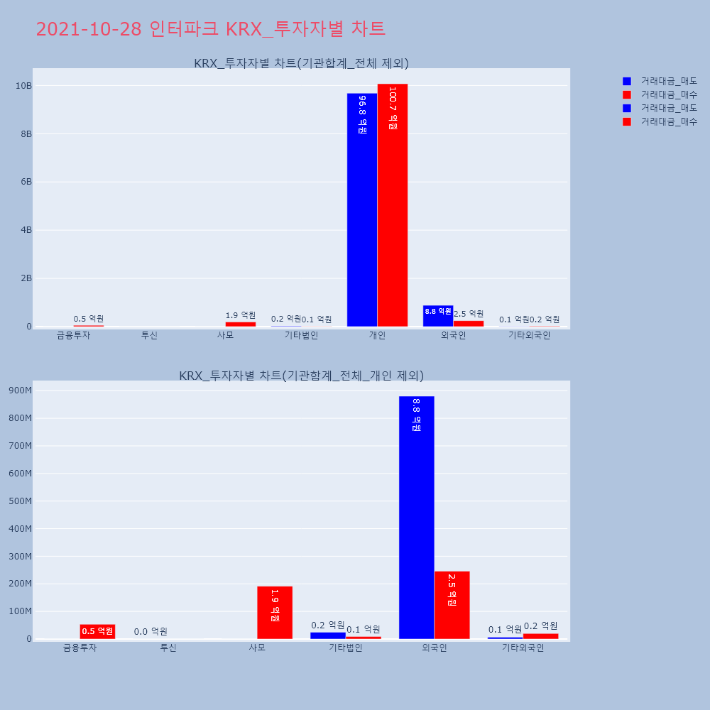 | 투자기관 | 거래량_매도 | 거래량_매수 | 거래량_순매수 | 거래대금_매도 | 거래대금_매수 | 거래대금_순매수 |