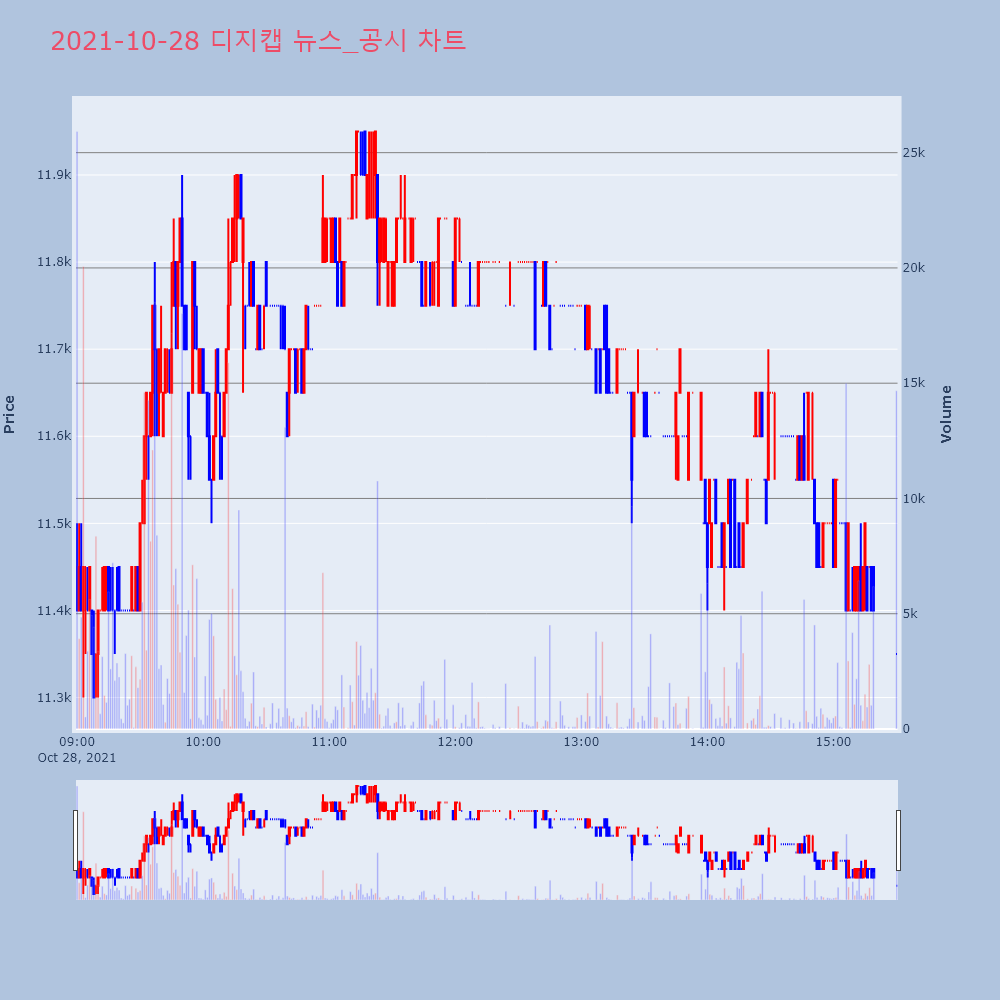 | 4 | 디지캡, +13.64% 상승폭 확대디지캡(197140)이 상승폭을 확대하고 있다. 전일 | 조선경제 | 디지캡 | 2021-10-27 12:09:56 |