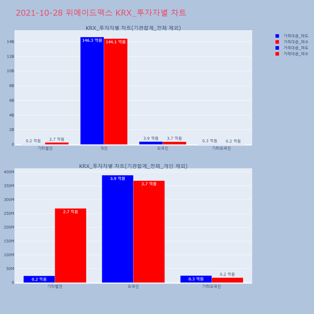 | 투자기관 | 거래량_매도 | 거래량_매수 | 거래량_순매수 | 거래대금_매도 | 거래대금_매수 | 거래대금_순매수 |