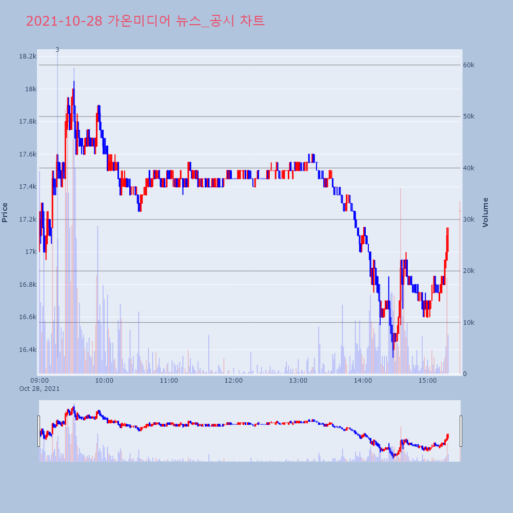 | 2 | 가온미디어, +3.68% 상승폭 확대가온미디어(078890)가 상승폭을 확대하고 있다. 전 | 조선경제 | 가온미디어 | 2021-10-27 11:14:55 |