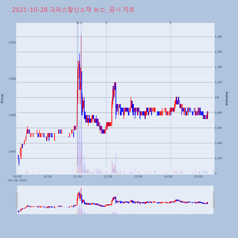 | 6 | 크리스탈신소재, 첫 그래핀 초도 물량 1.5t 납품▶ 하이스탁론, 선취수수료 없는 월 0.2%대 최저금리 | 이데일리 | 크리스탈신소재 | 2021-10-28 14:05:18 |