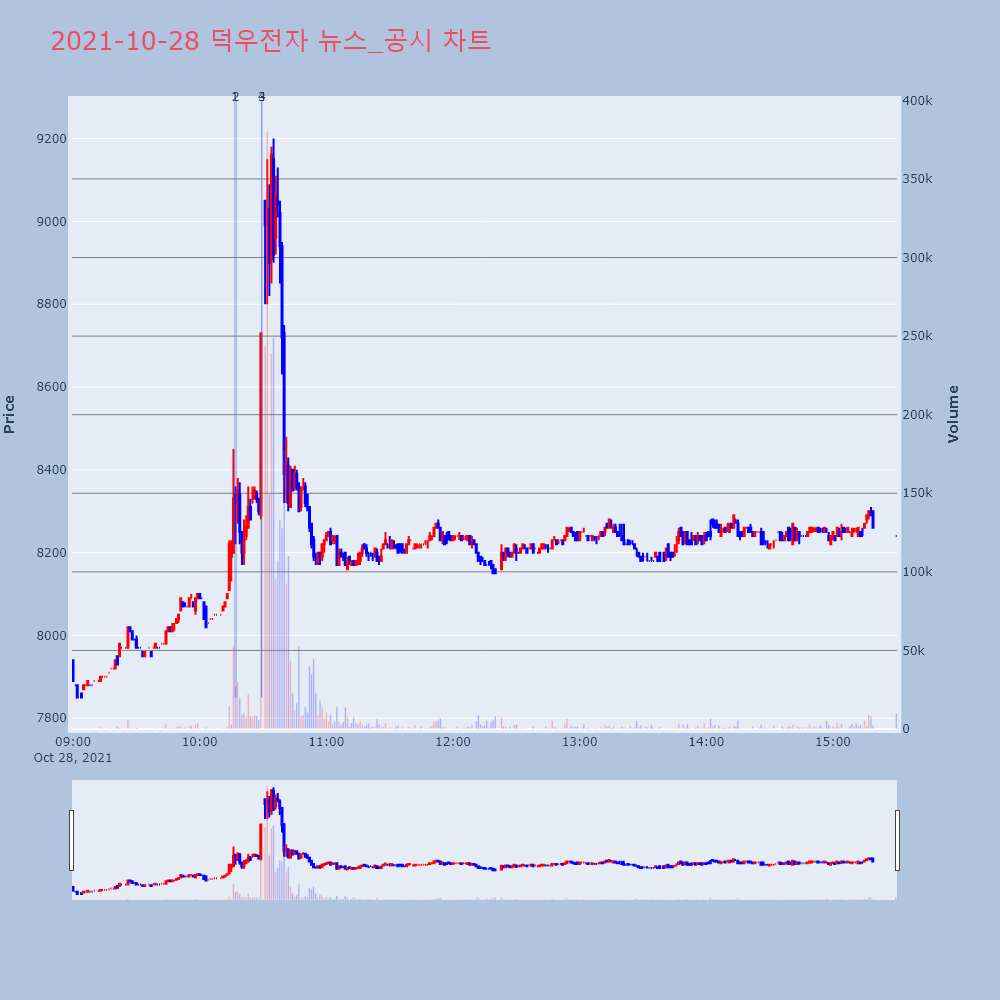 | 3 | 덕우전자, +10.51% VI 발동덕우전자(263600)가 VI가 발동했다. 전일 대비 | 조선경제 | 덕우전자 | 2021-10-28 10:29:23 |