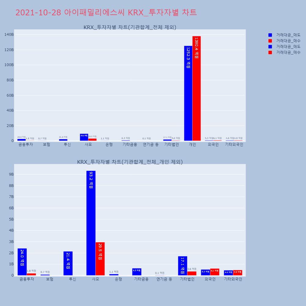 | 투자기관 | 거래량_매도 | 거래량_매수 | 거래량_순매수 | 거래대금_매도 | 거래대금_매수 | 거래대금_순매수 |
