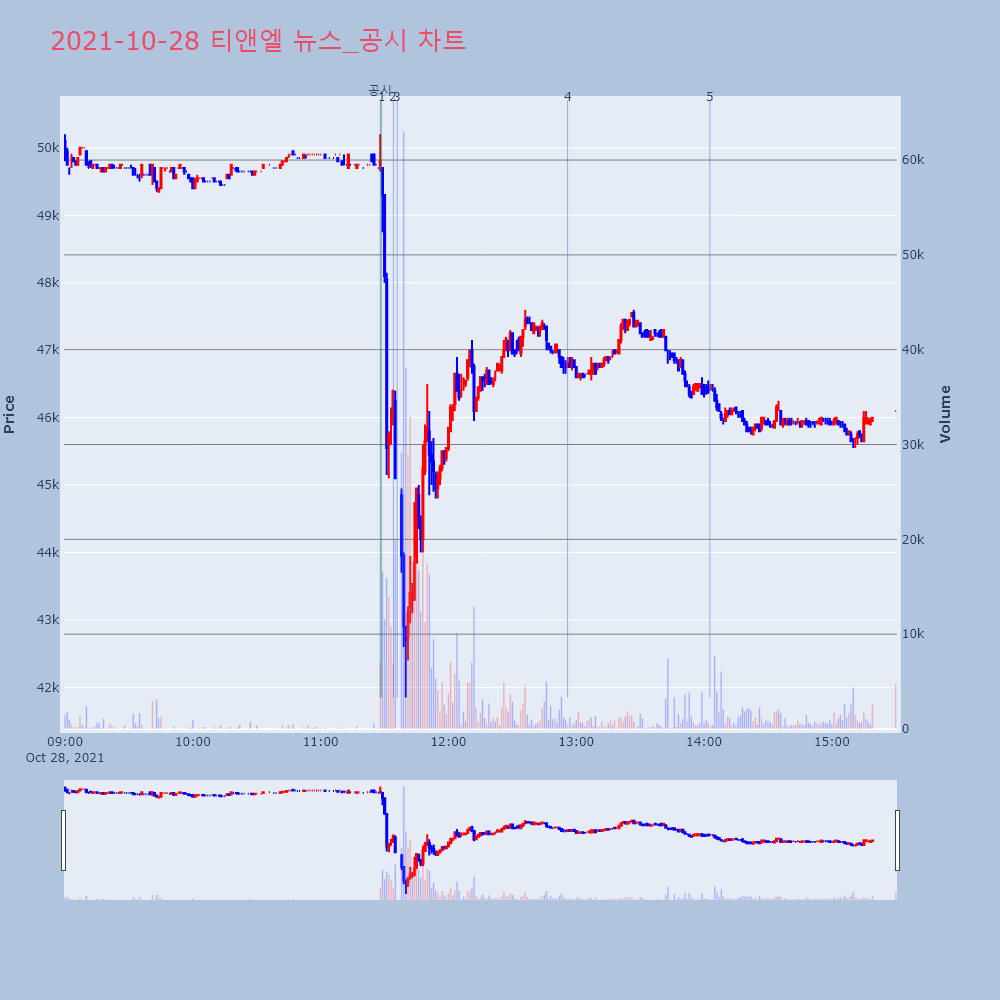 3 | 티앤엘, -9.15% VI 발동티앤엘(340570)이 VI가 발동했다. 전일 대비 9 | 조선경제 | 티앤엘 | 2021-10-28 11:35:54 |