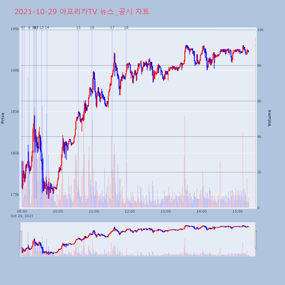 9 | 아프리카TV(067160) 소폭 상승세 +3.01%, 신고가 경신 제목 : 아프리카TV(067160)소폭 상승세 +3.0 | 인포스탁 | 아프리카TV | 2021-10-29 09:20:06 |
