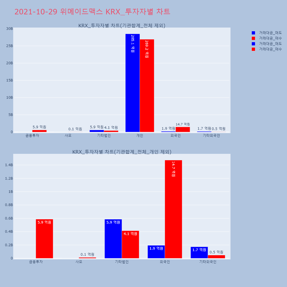 | 투자기관 | 거래량_매도 | 거래량_매수 | 거래량_순매수 | 거래대금_매도 | 거래대금_매수 | 거래대금_순매수 |