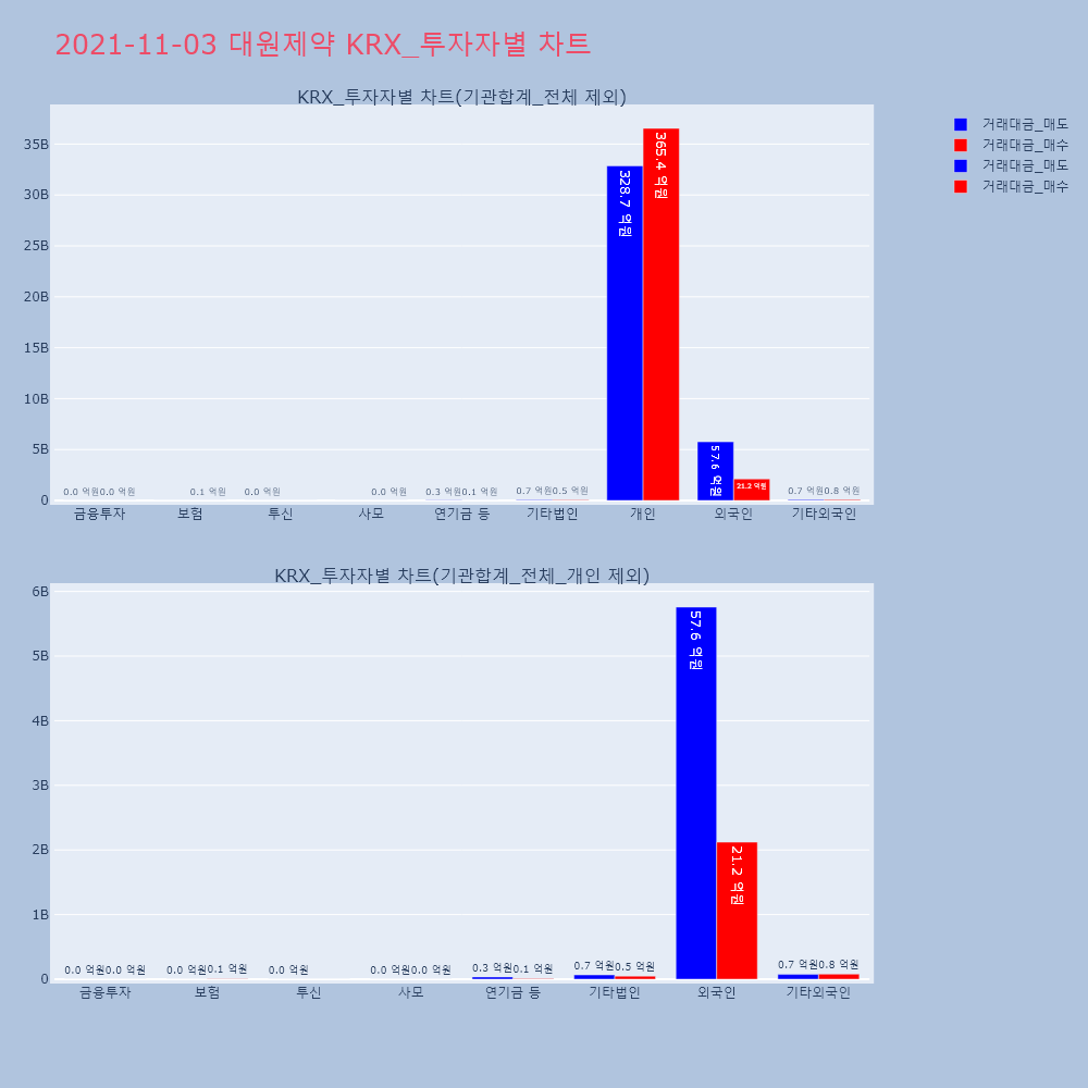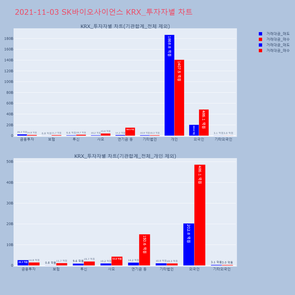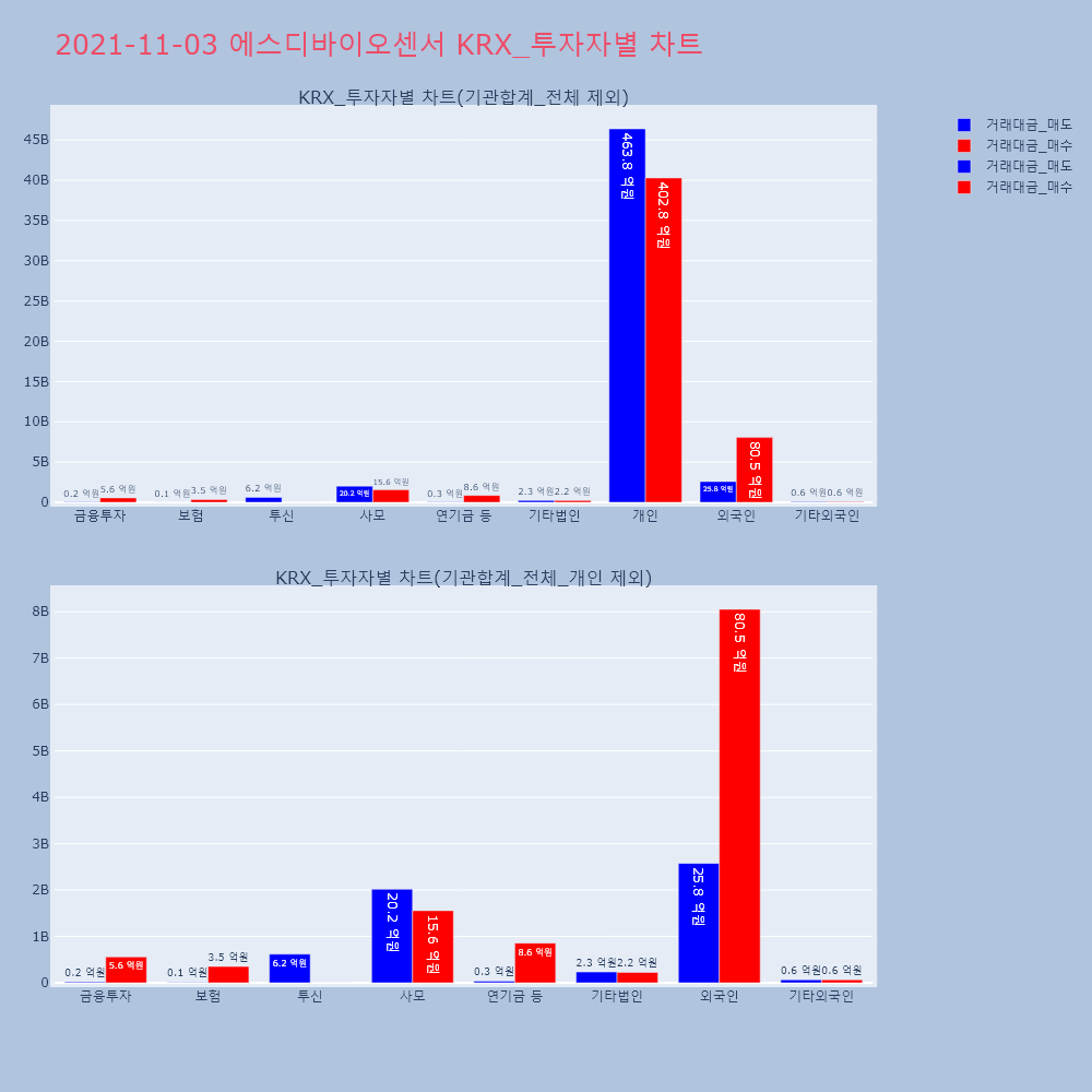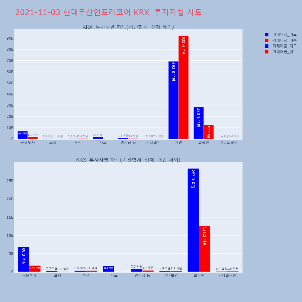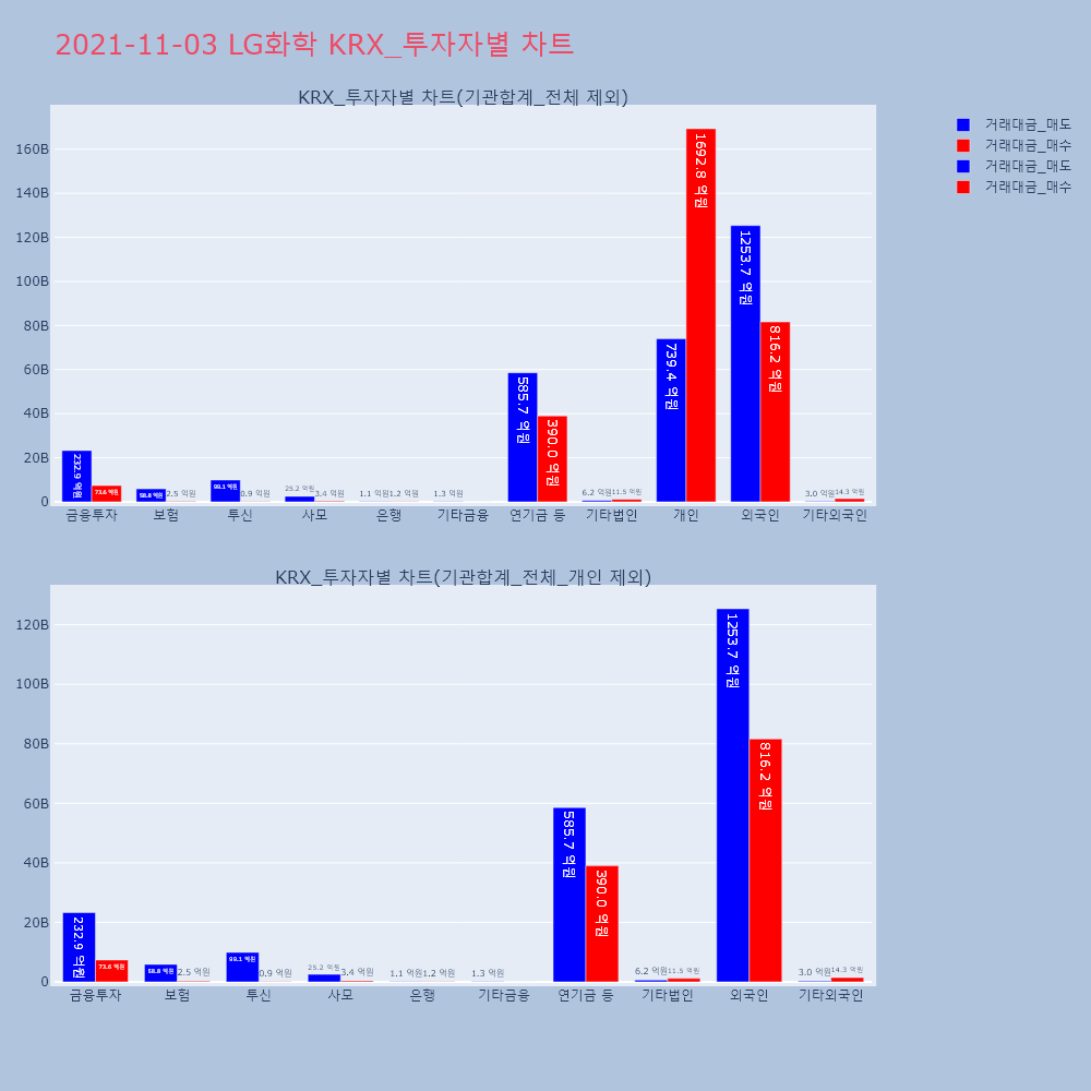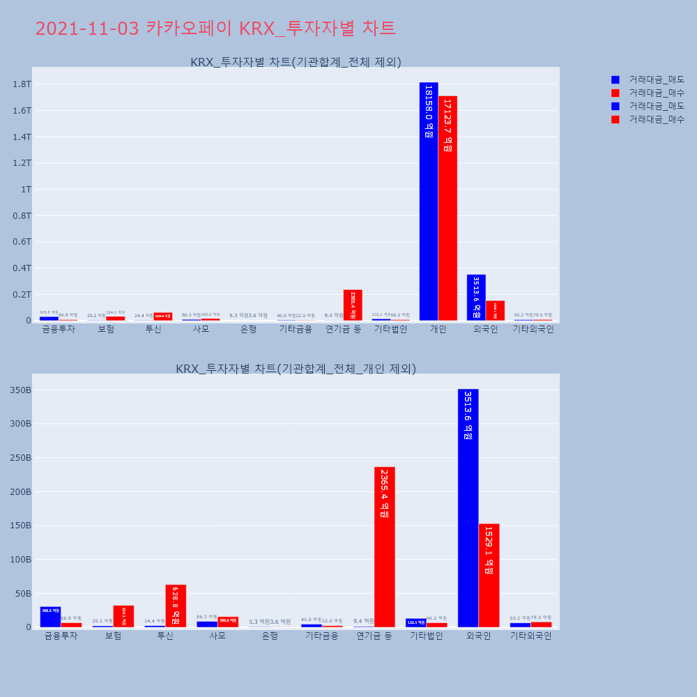 | 투자기관 | 거래량_매도 | 거래량_매수 | 거래량_순매수 | 거래대금_매도 | 거래대금_매수 | 거래대금_순매수 |