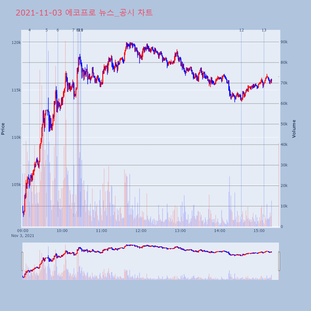 | 7 | [장중수급포착] 에코프로, 외국인/기관 동시 순매수… 주가 +14.31% [서울=뉴스핌] 로보뉴스 = 03일 10시 15분 현재 | 뉴스핌 | 에코프로 | 2021-11-03 10:17:15 |