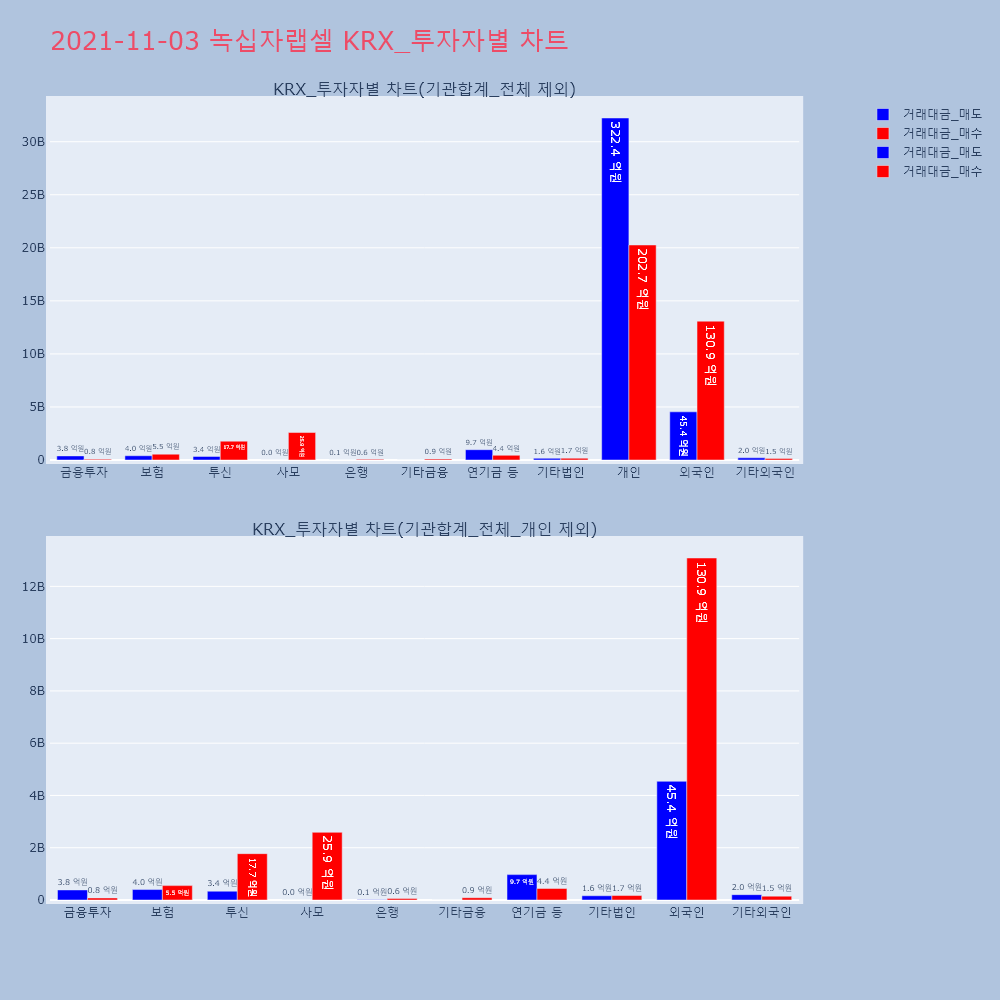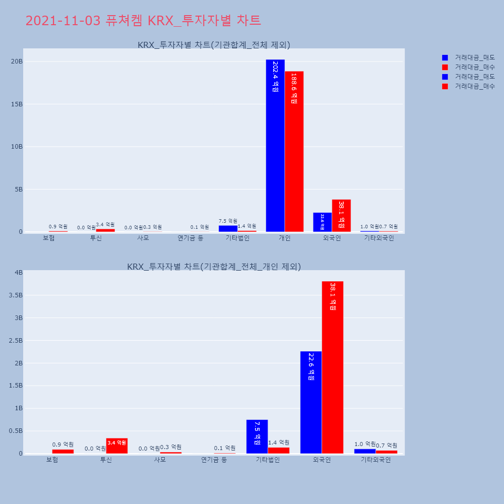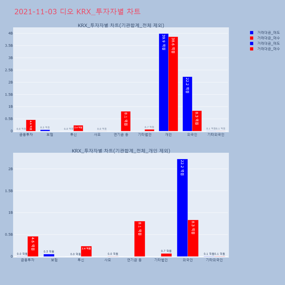 | 투자기관 | 거래량_매도 | 거래량_매수 | 거래량_순매수 | 거래대금_매도 | 거래대금_매수 | 거래대금_순매수 |