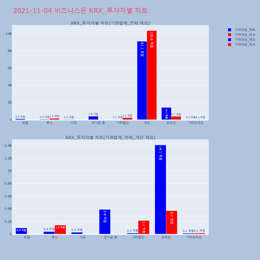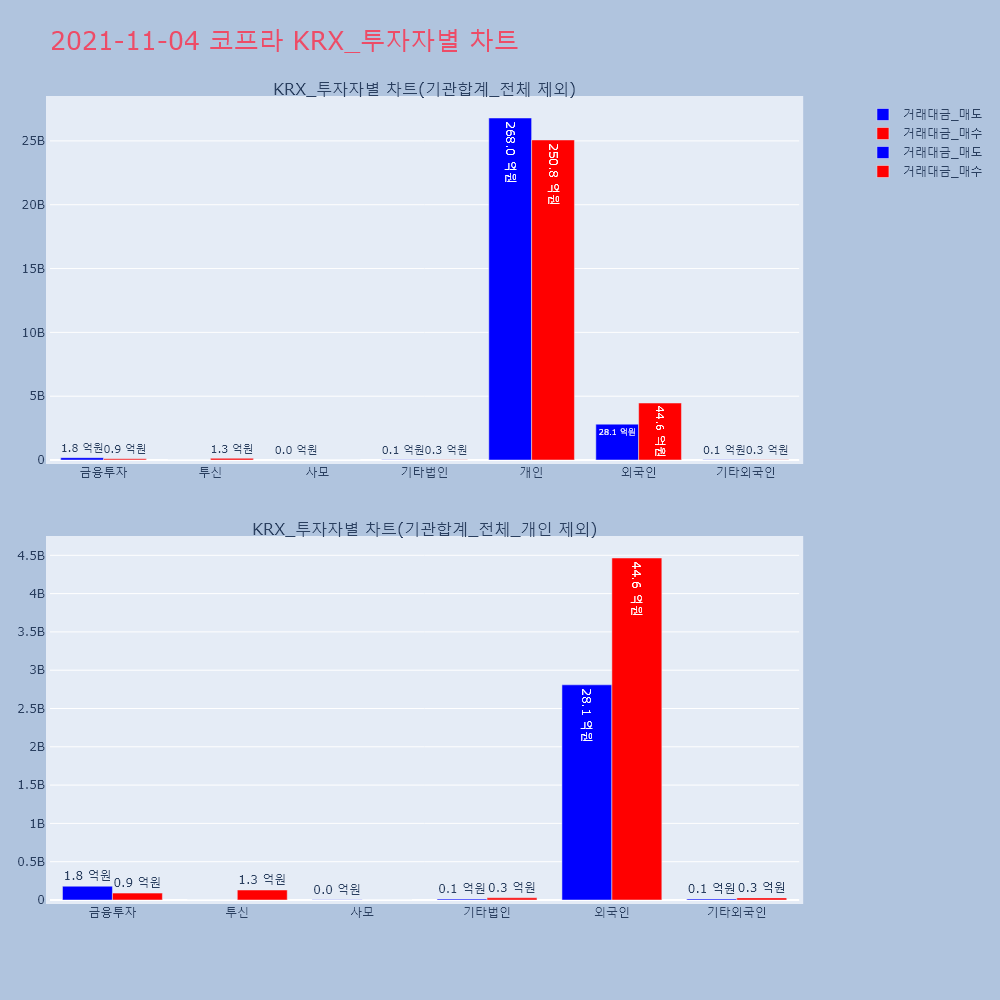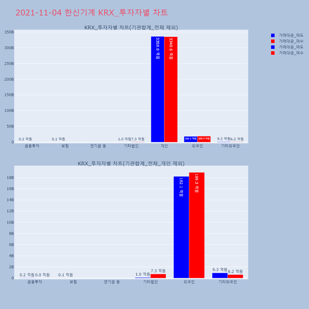 | 투자기관 | 거래량_매도 | 거래량_매수 | 거래량_순매수 | 거래대금_매도 | 거래대금_매수 | 거래대금_순매수 |