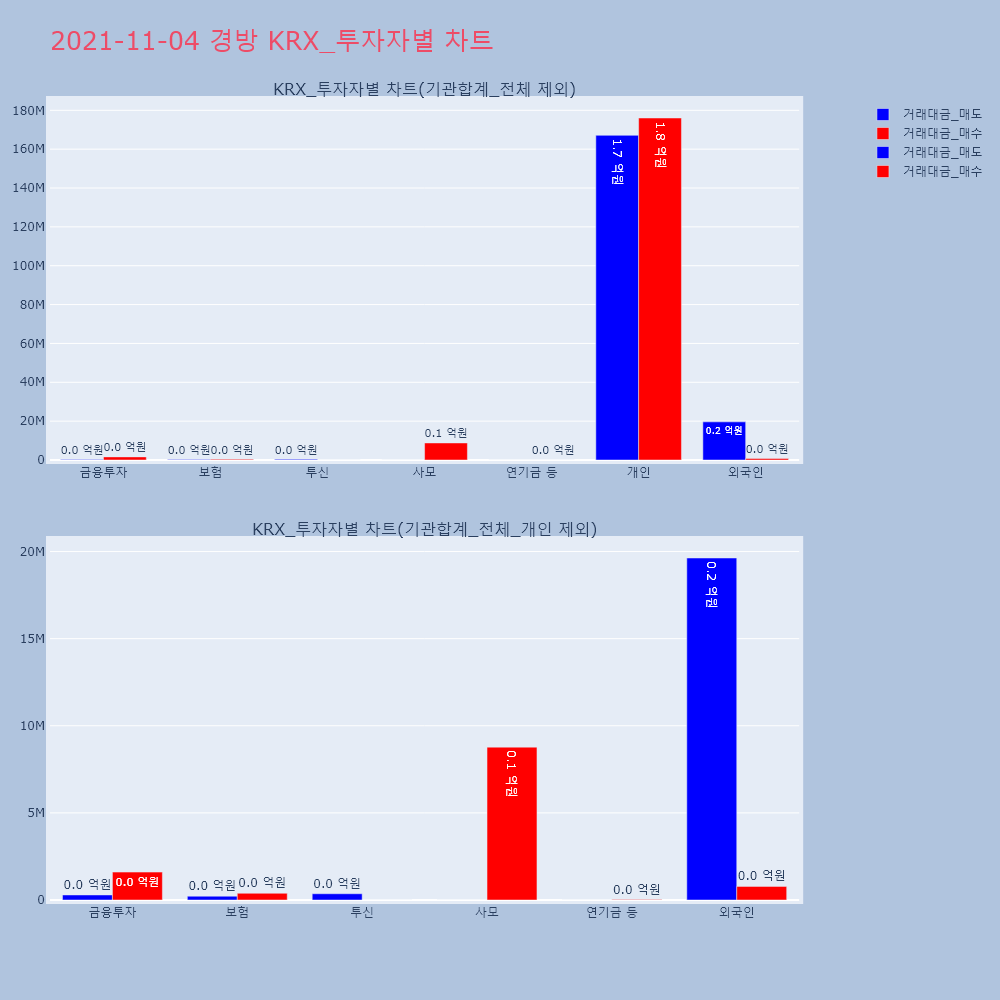 | 투자기관 | 거래량_매도 | 거래량_매수 | 거래량_순매수 | 거래대금_매도 | 거래대금_매수 | 거래대금_순매수 |