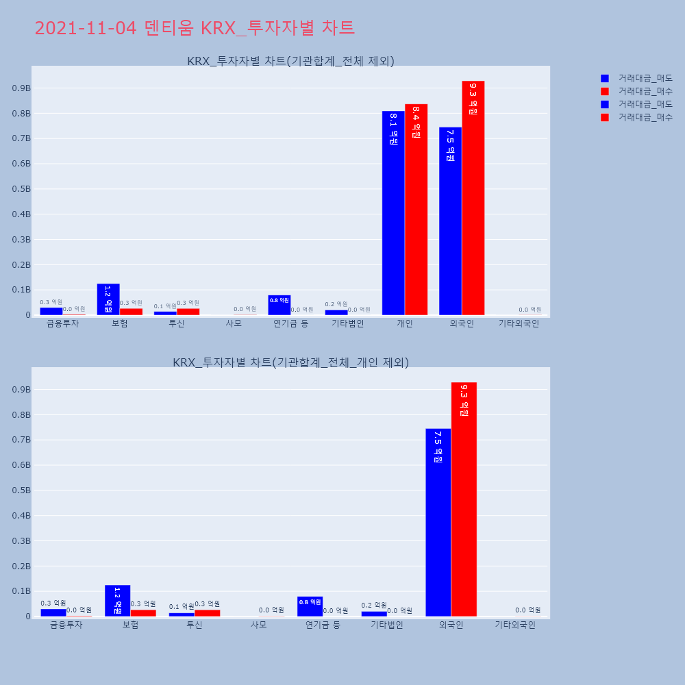 | 투자기관 | 거래량_매도 | 거래량_매수 | 거래량_순매수 | 거래대금_매도 | 거래대금_매수 | 거래대금_순매수 |