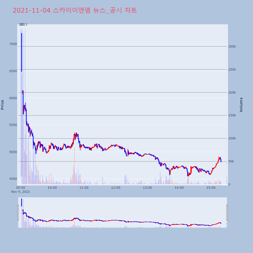 12 스카이이앤엠(131100) 급등 출발 +15.48%, VI발동, 이틀째 급등 제목 : 스카이이앤엠(131100)급등 출발 +15.4 인포스탁 스카이이앤엠 2021-11-04 09:03:00