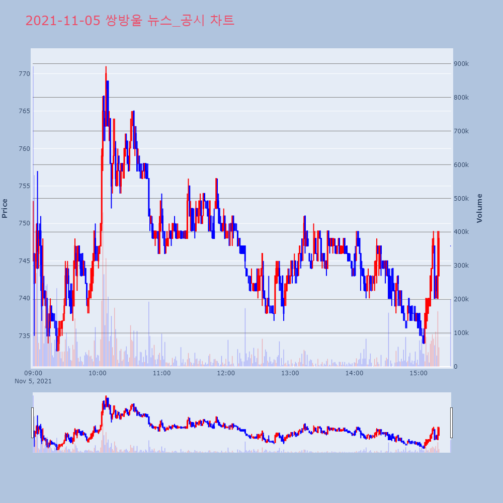 3 | 쌍방울, +10.55% VI 발동쌍방울(102280)이 VI가 발동했다. 전일 대비 1 | 조선경제 | 쌍방울 | 2021-11-04 12:38:43 |